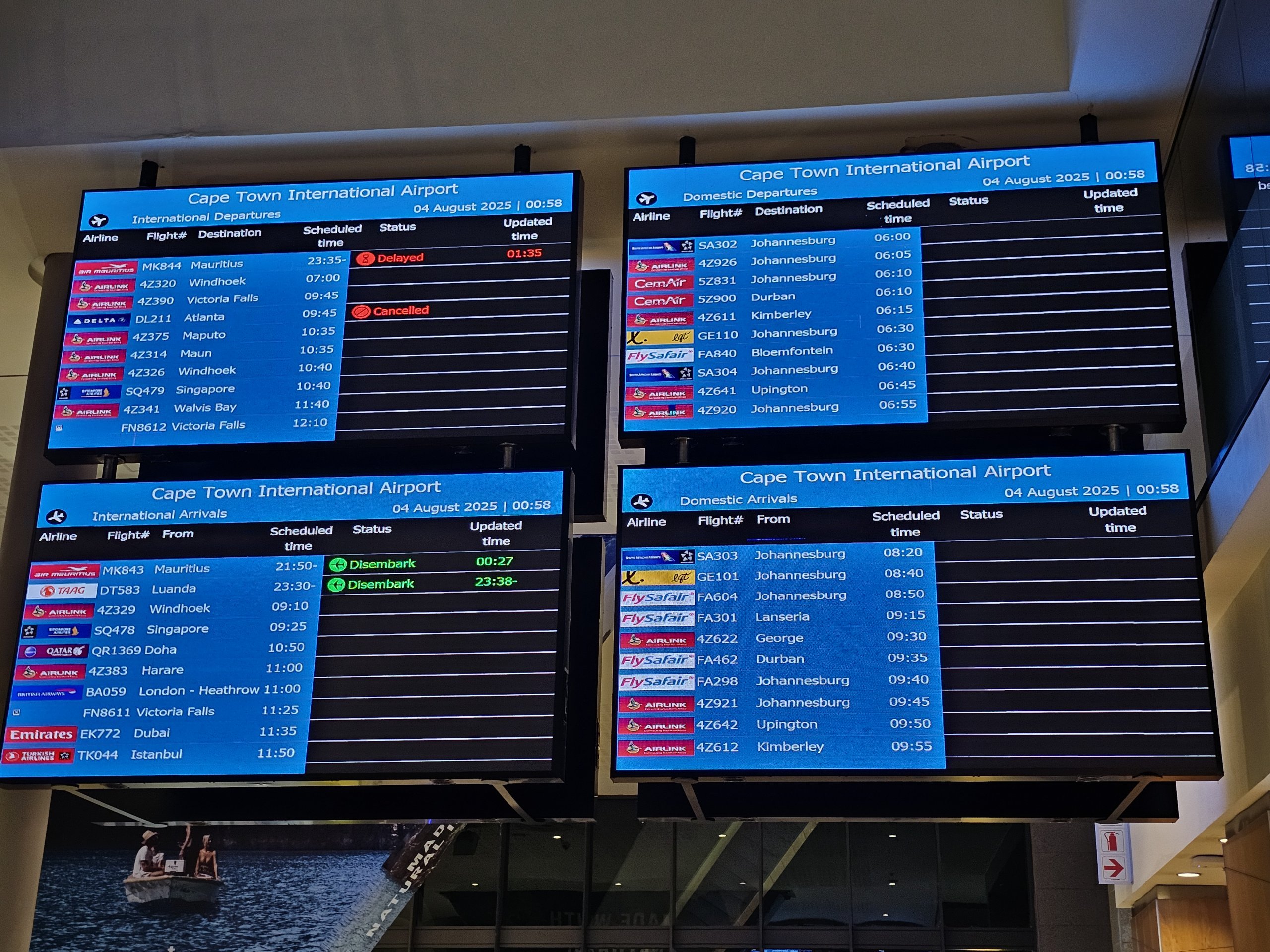 Шукаєте інформацію про прибуття або відправлення рейсів з/до аеропорту Кейптаун онлайн в режимі реального часу, щоб перевірити затримку або час посадки на борт літака? Офіційний сайт аеропорту завжди пропонує найточнішу інформацію: