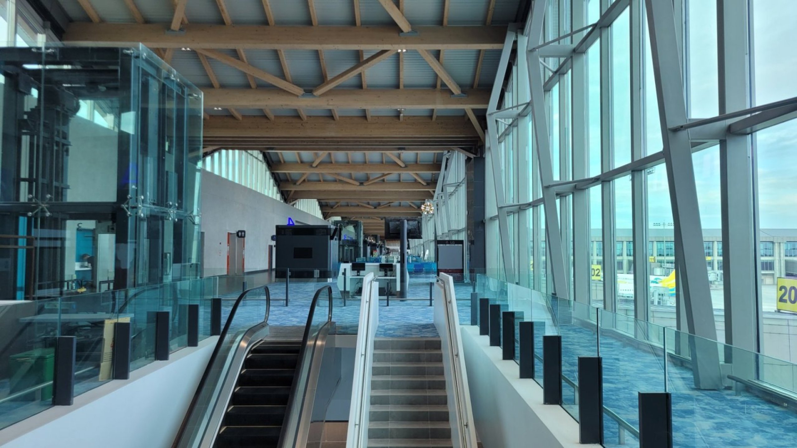 Також є нова широка під'їзна дорога довжиною в кілька кілометрів, яка повністю відрізняється від старого під'їзду. Сьогодні я лечу міжнародним рейсом, тож мені цікаво подивитися, як це виглядає там.