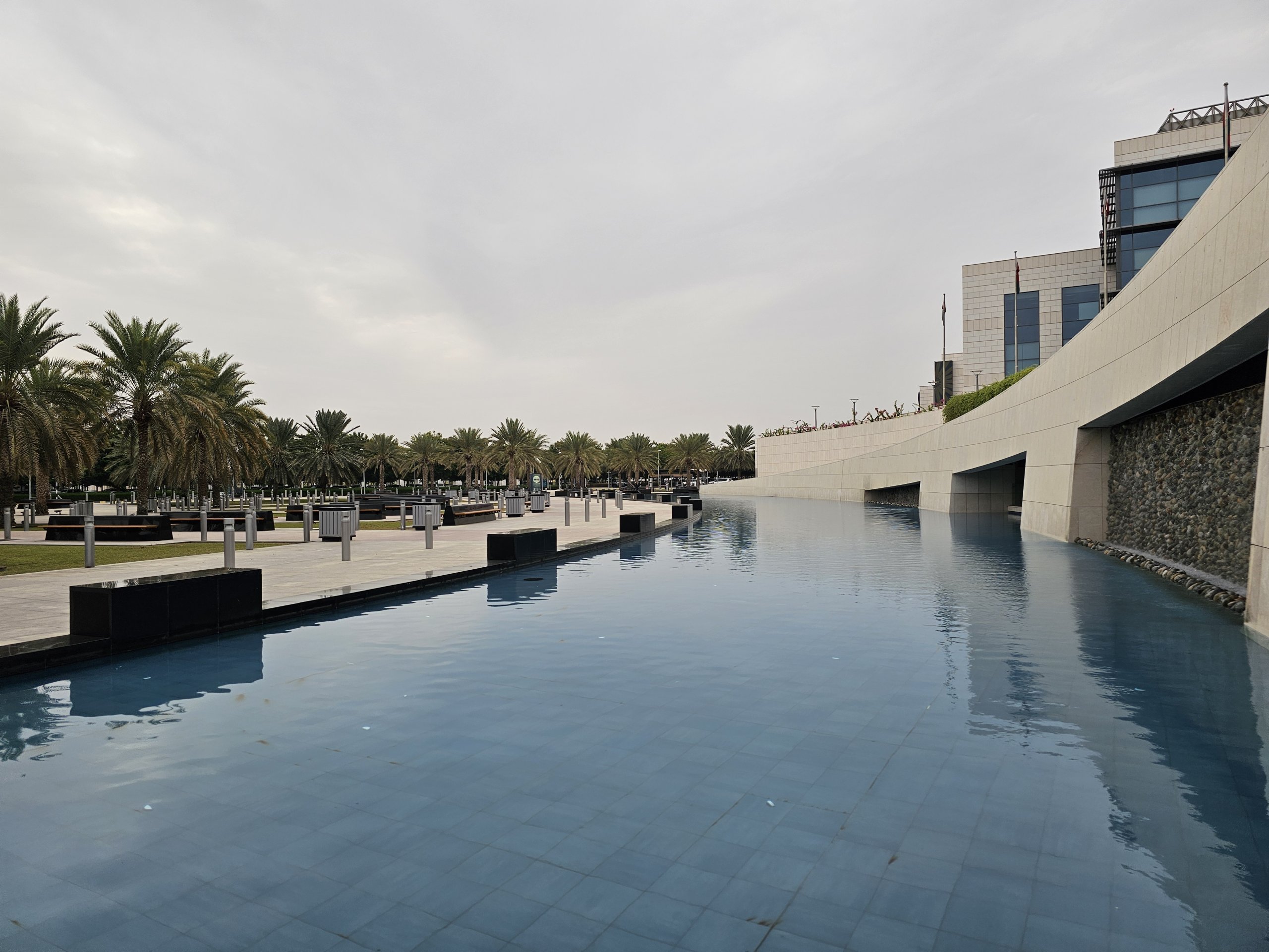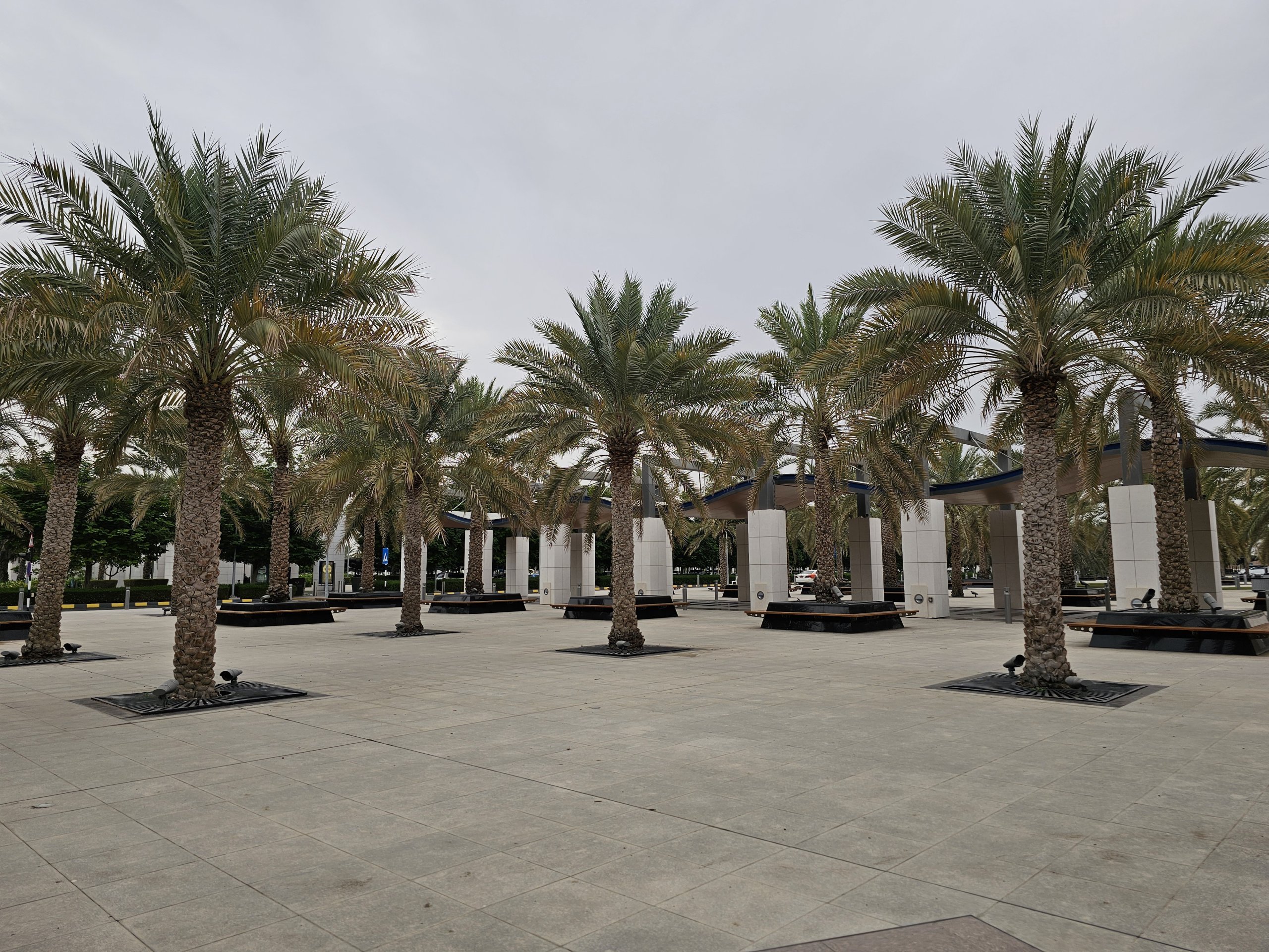 У підвальному приміщенні за межами терміналу ви можете відпочити в гарно облаштованому парку з великою кількістю пальмових лавок і фонтаном.