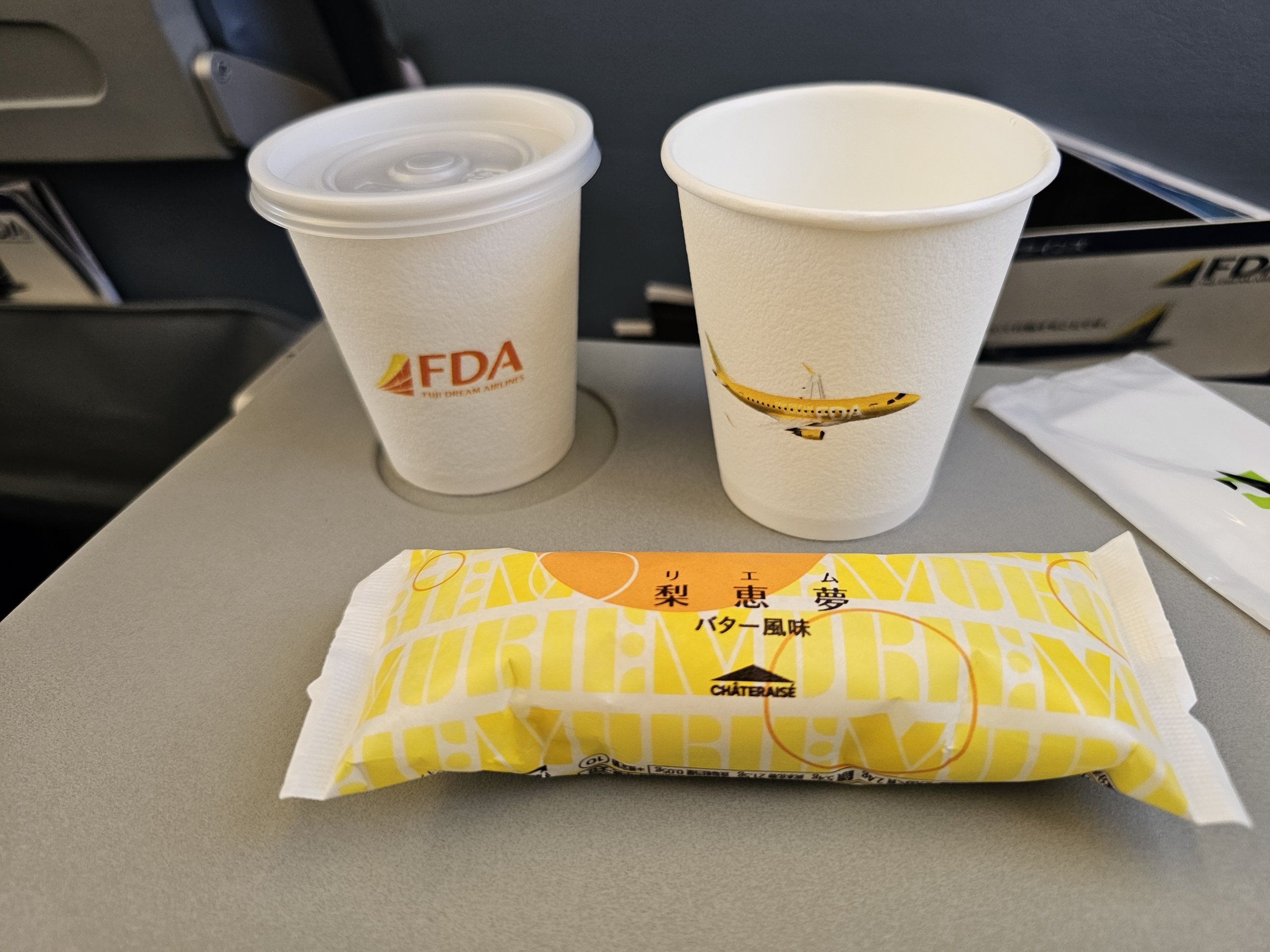 Стандартне харчування не додається, але максимальна тривалість польоту на рейсах Fuji Dream Airlines складає близько 2 годин, тому їжа вам не знадобиться.
