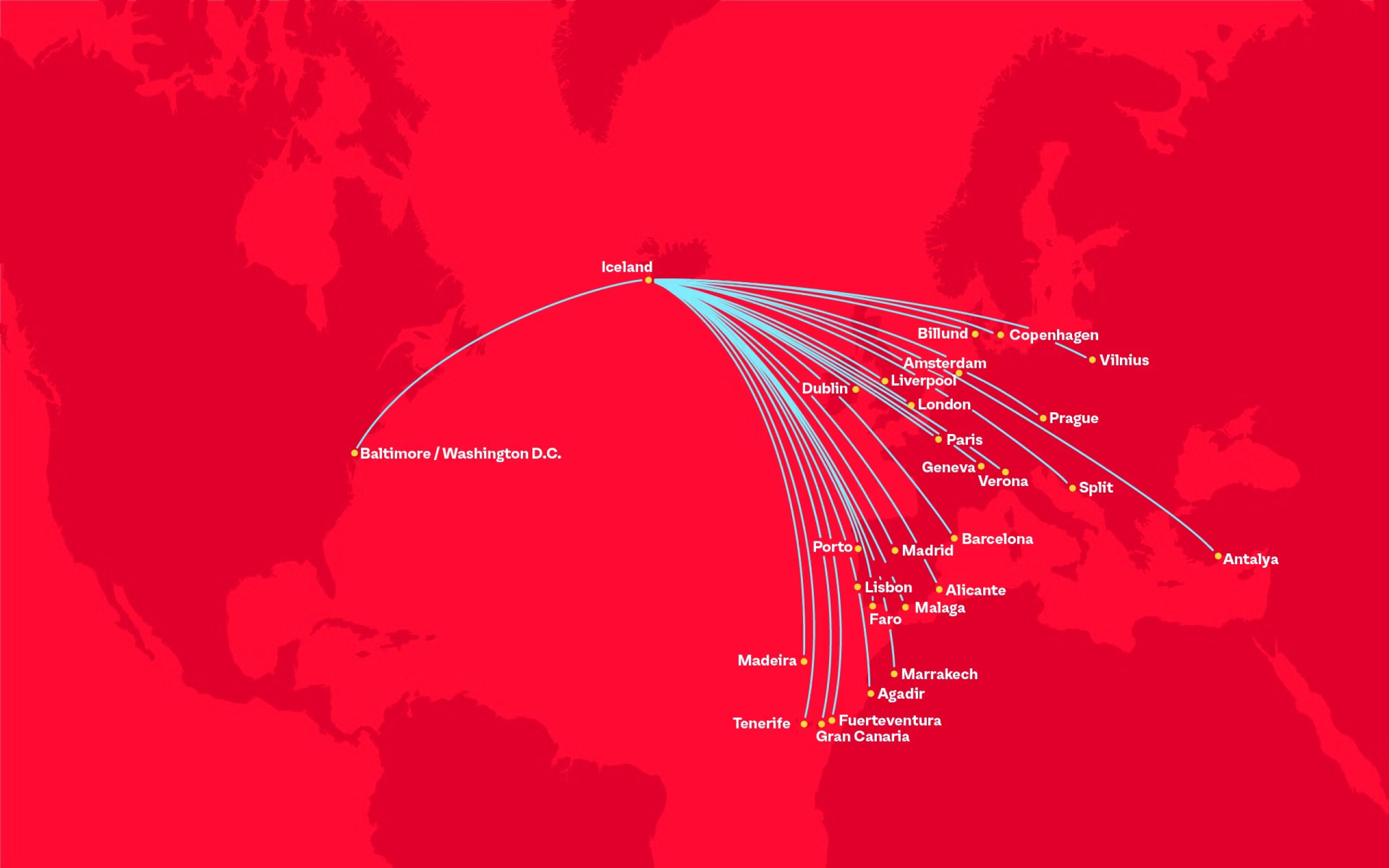 Польоти до Північної Америки поступово припинили, зосередившись на перевезенні ісландців до морських курортів, а також на маршрутах з протилежним потенціалом - привезенні туристів до Ісландії. Наприклад, популярними були маршрути з Праги PRG, Варшави WAW, Лондона STN, Вільнюса VNO або Парижа CDG.