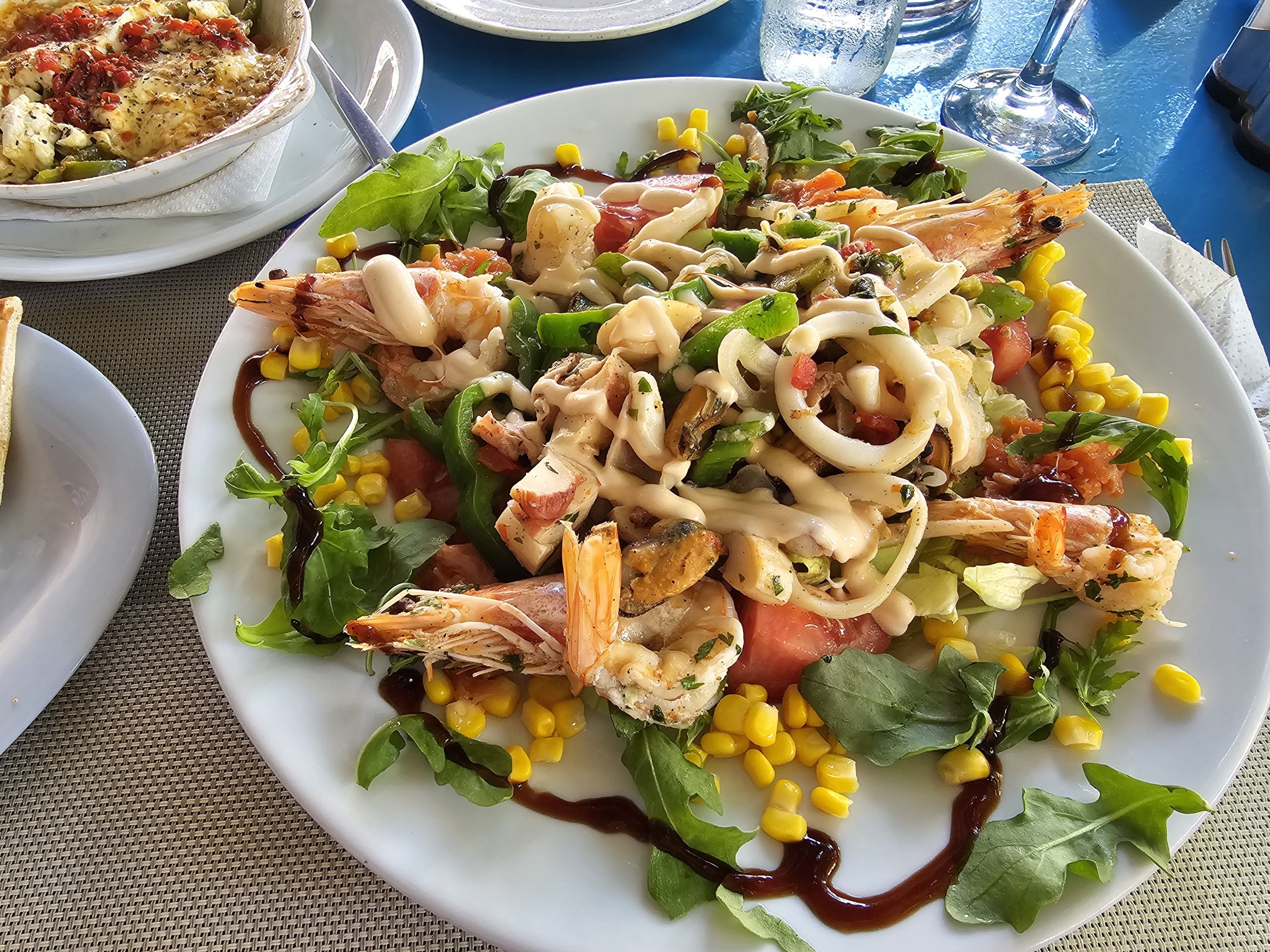 Морепродукти - окрім риби, звичайно, всі ресторани також пропонують страви (переважно салати) з інших морепродуктів, таких як мідії, креветки та восьминоги.