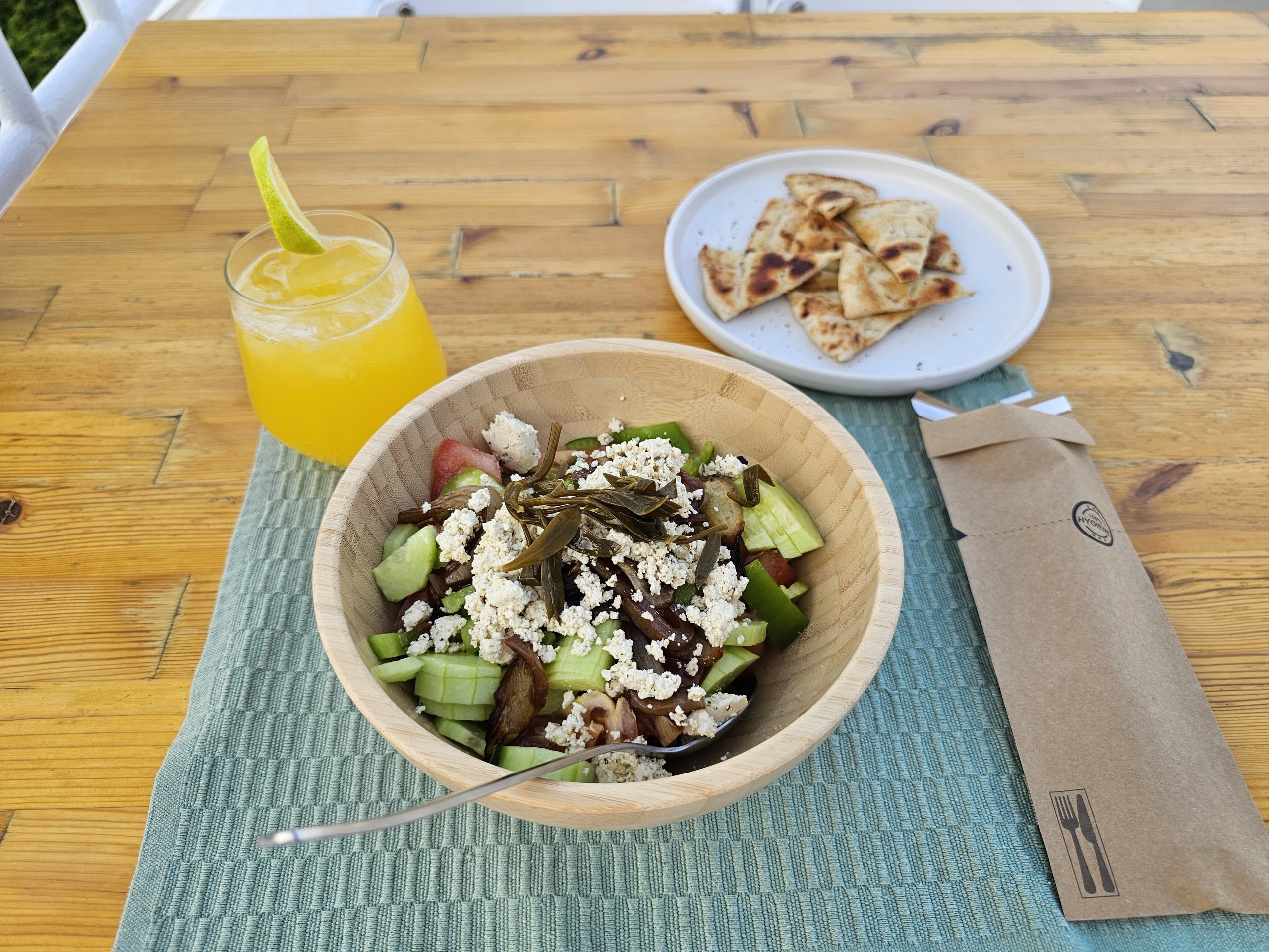 Грецький салат - класичний грецький салат є повсюдним і часто вживається замість гарніру. Можна сказати, що він дуже схожий на рубаний салат з Болгарії, тільки менш ароматний. Він складається зі шматочків бринзи, помідорів, перцю, огірків, оливок та цибулі.