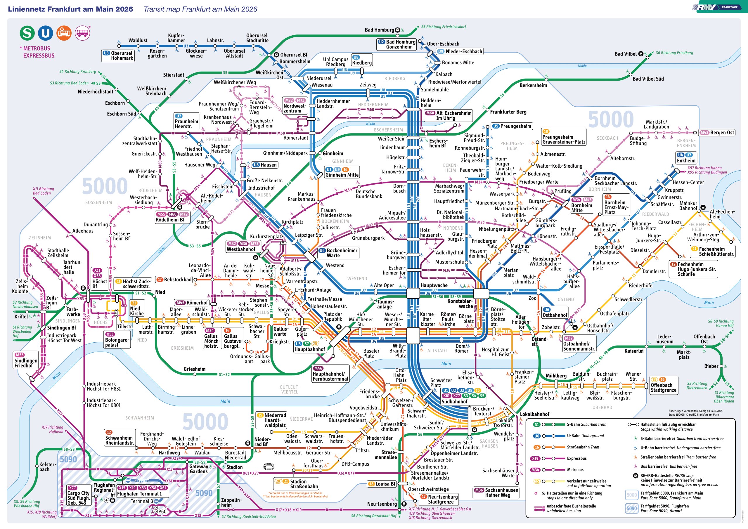 Детальний перелік станцій, ліній та розклад можна знайти на сайті rmv.de.