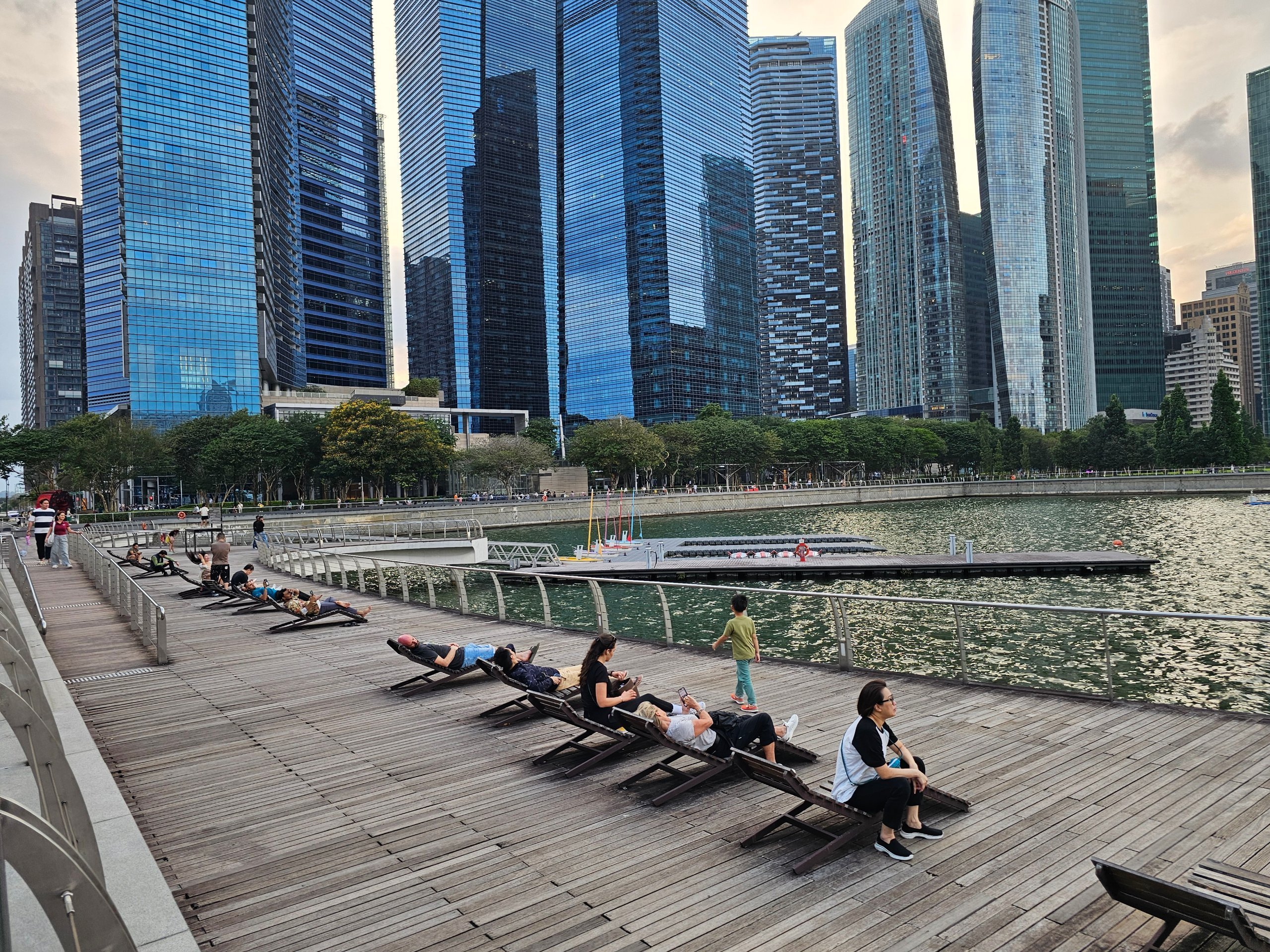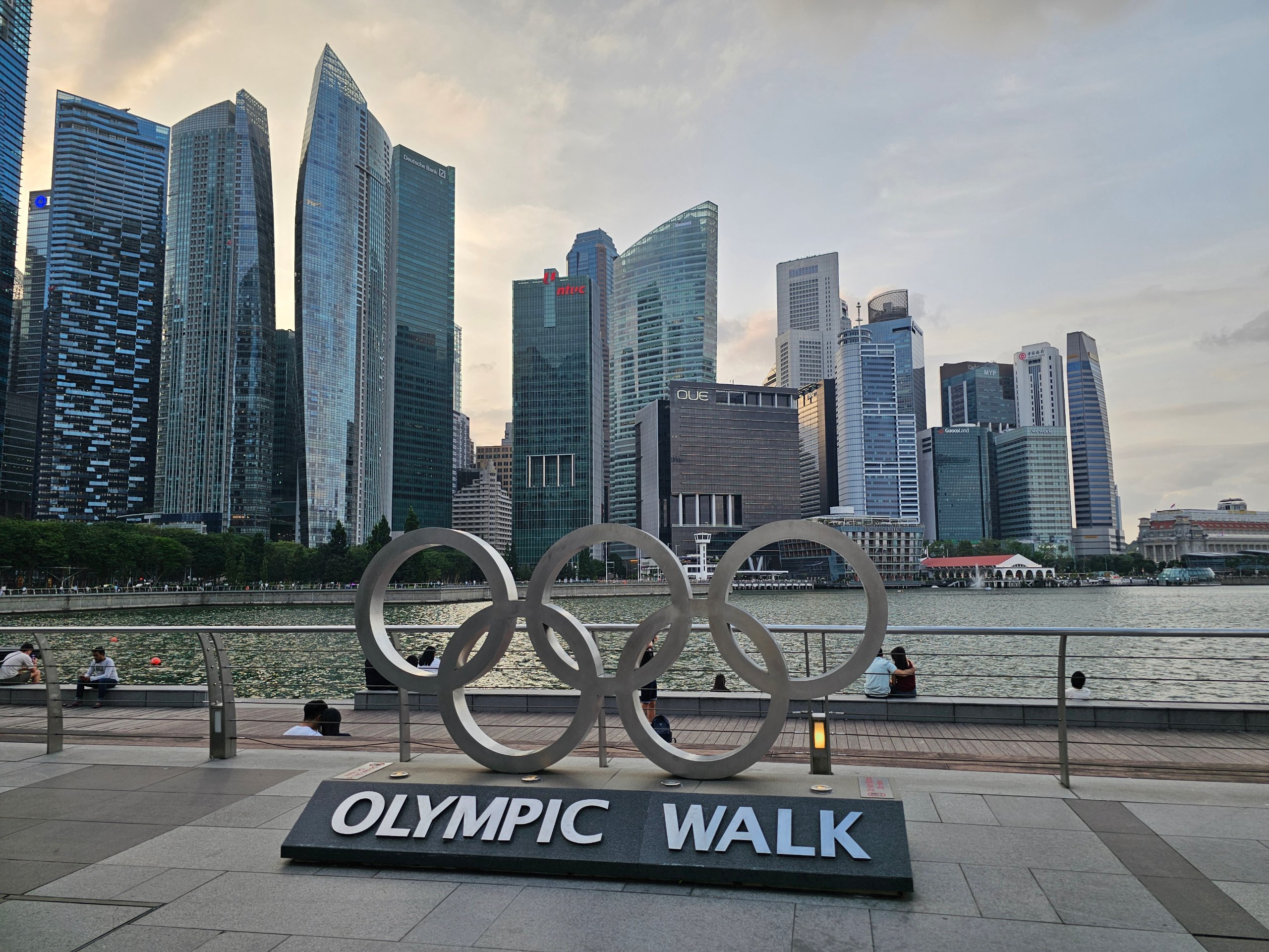 Широка пішохідна набережна з пальмами, частина якої називається Олімпійська алея, - одне з моїх улюблених місць у Сінгапурі.