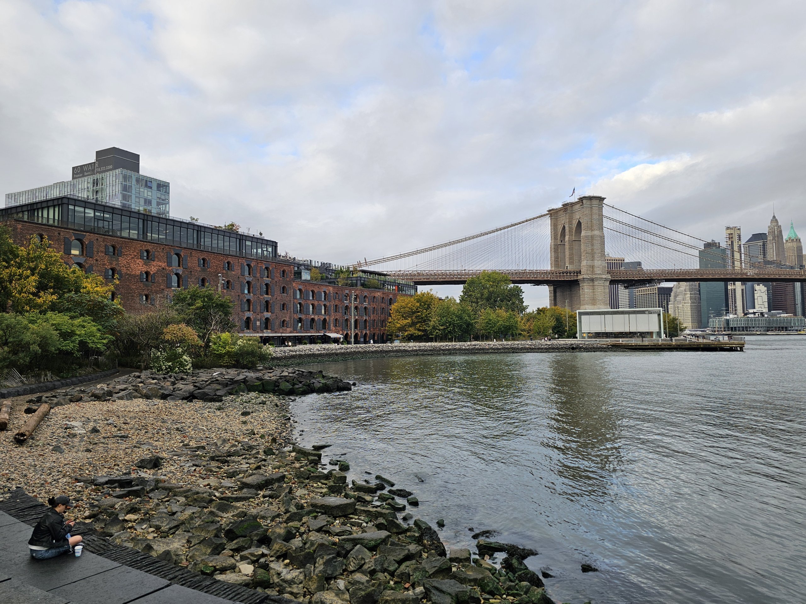У Дамбо є чудова дощата набережна вздовж Іст-Рівер, яка продовжується аж до Бруклінського мостового парку.