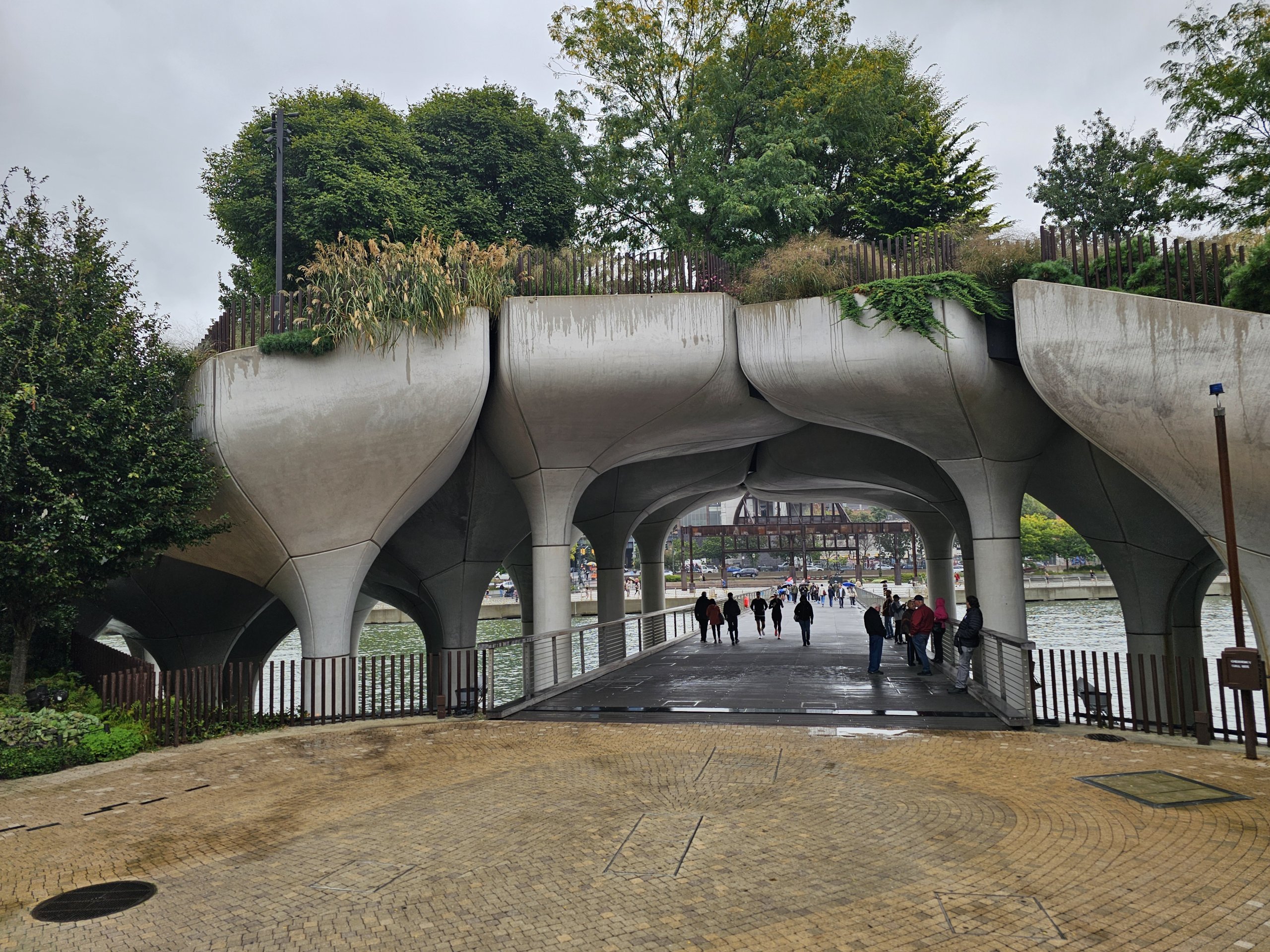 Острів відкрився у 2021 році та займає площу в 1 акр. Він складається з 132 бетонних пілонів, які місцеві жителі називають "тюльпанами" за їх унікальну форму.