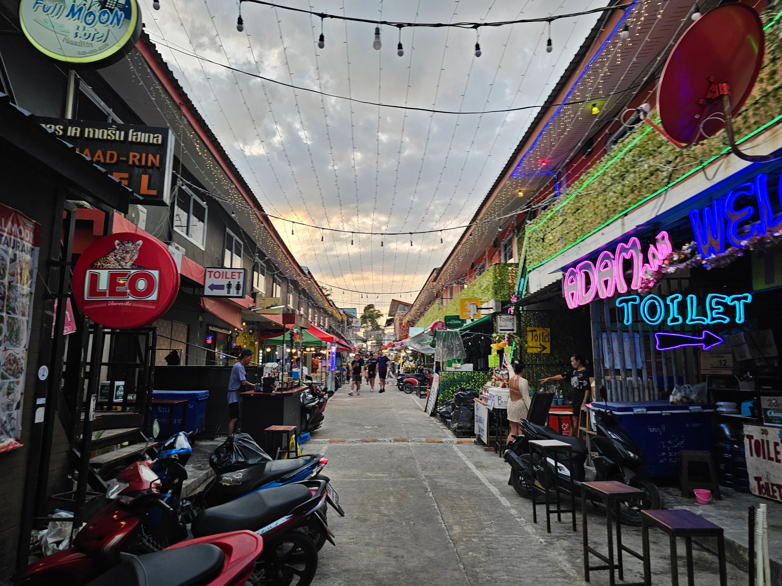 Пішохідна вулиця Хаад Рін найбільш жвава під час святкування повного місяця, але і в інші дні вона відкрита.