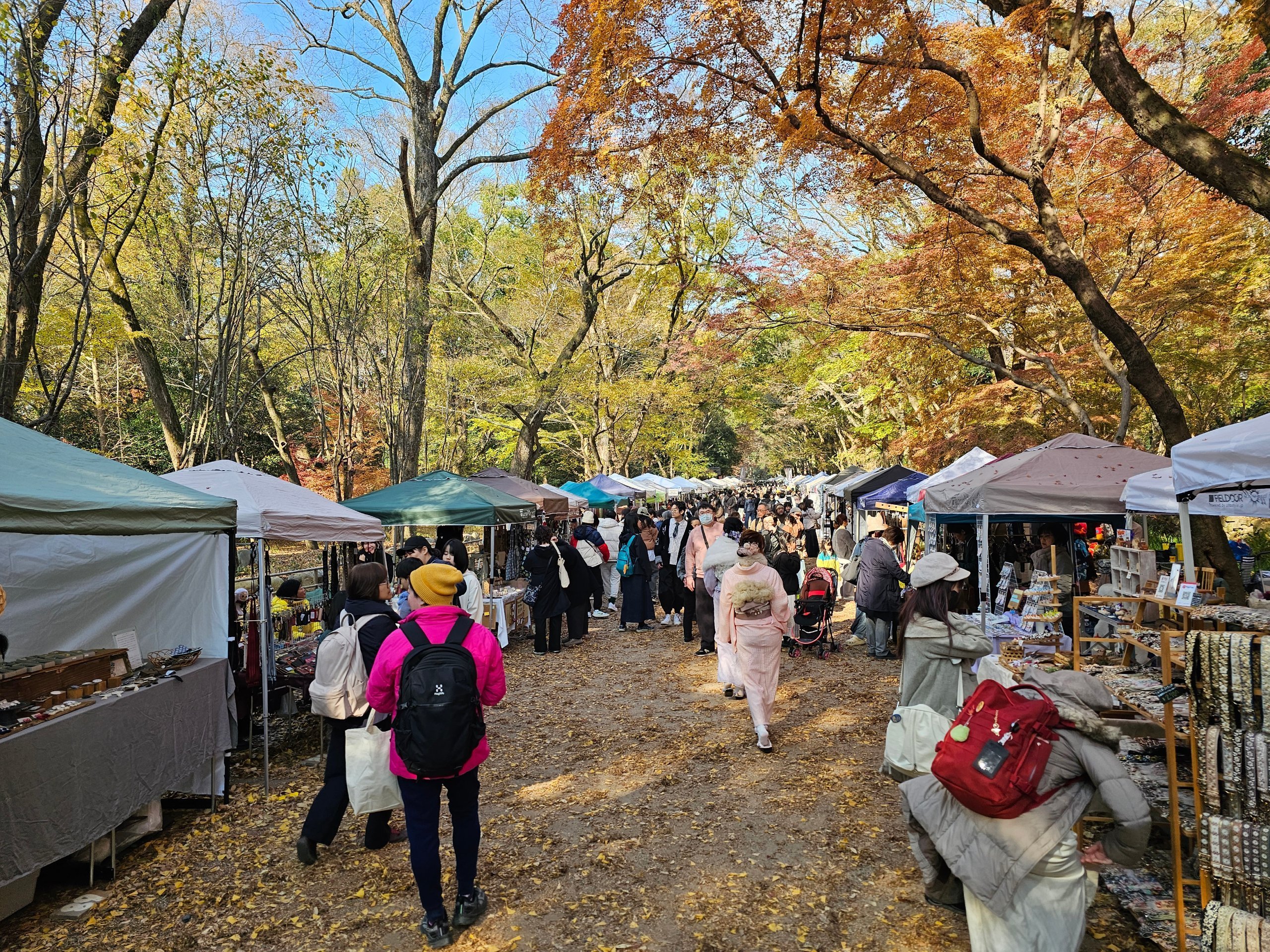 Через ліс Тадасу-но Морі пролягає пішохідна стежка, повна сувенірних крамничок.