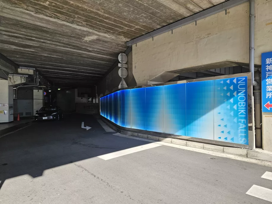 Спочатку потрібно пройти через підземний перехід під станцією, який позначений синім кольором і написом "Водоспад Нунабікі".