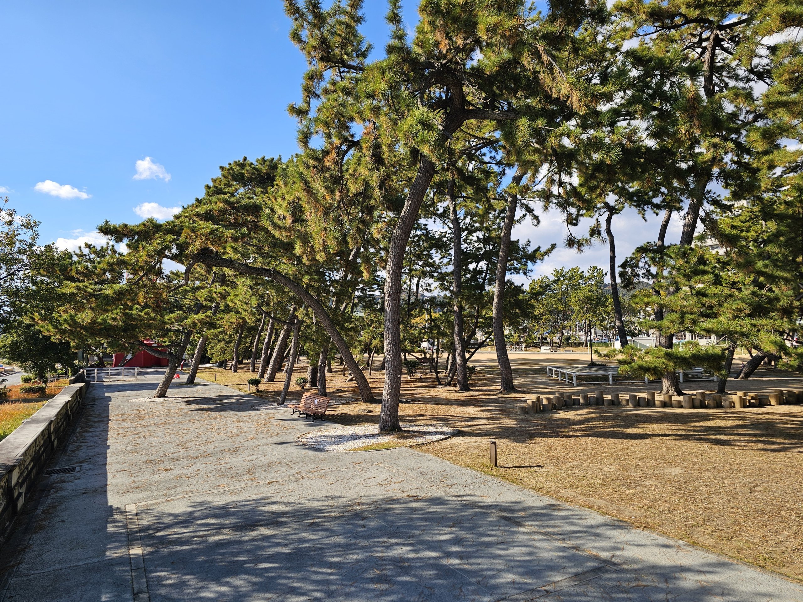 З іншого боку, тут багато місця, гарний вид на узбережжя і, якщо видимість хороша, на міст Акаші Кайкьо.