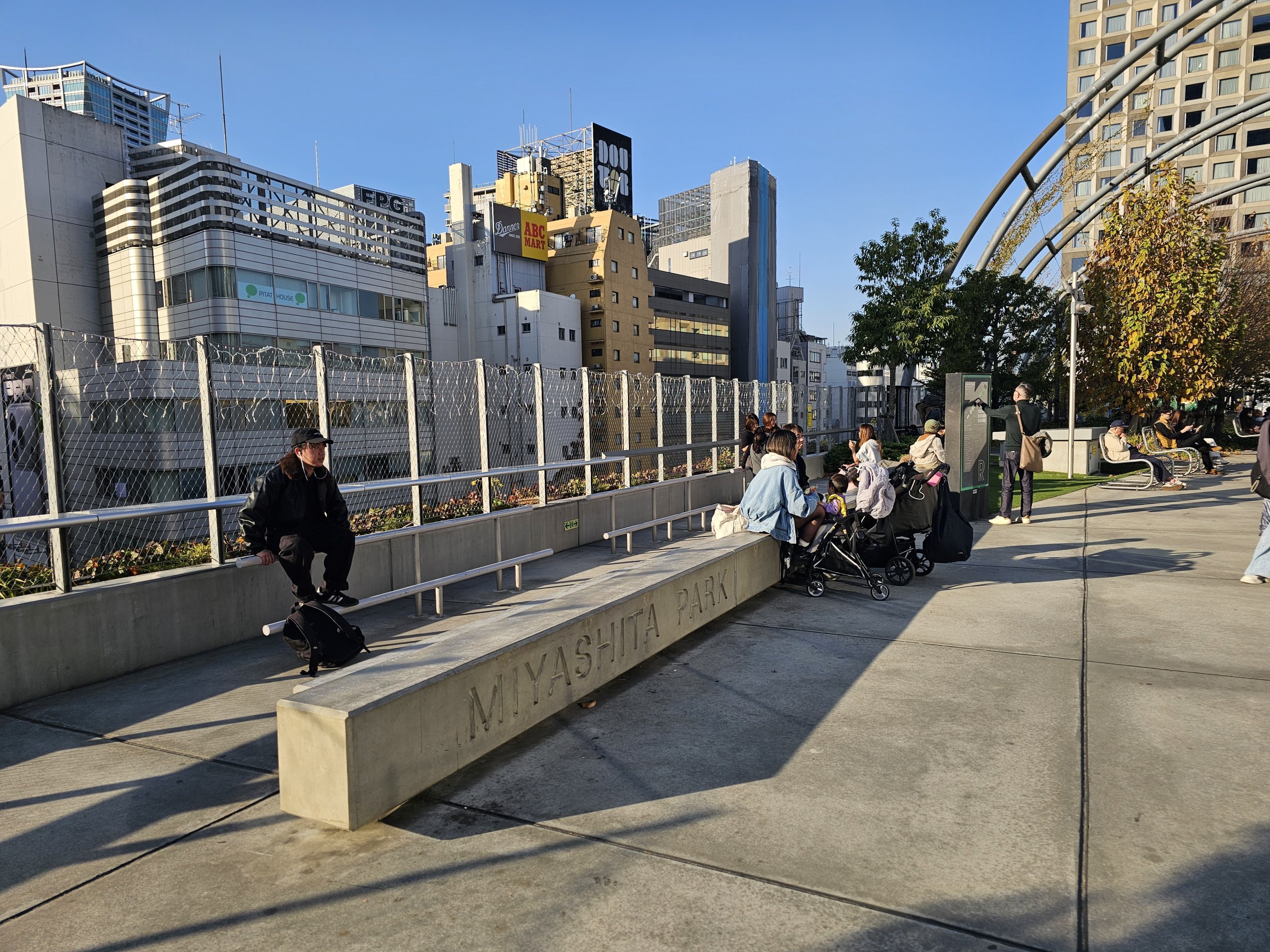 Парк Міясіта трохи нагадує нью-йоркську Хай-Лайн - це штучно створена вузька смуга зелених насаджень на вершині будівель універмагів промислового вигляду. З одного боку проходять колії жвавої залізничної лінії YR Yamamote, з іншого боку - колії лінії Saikyo.
