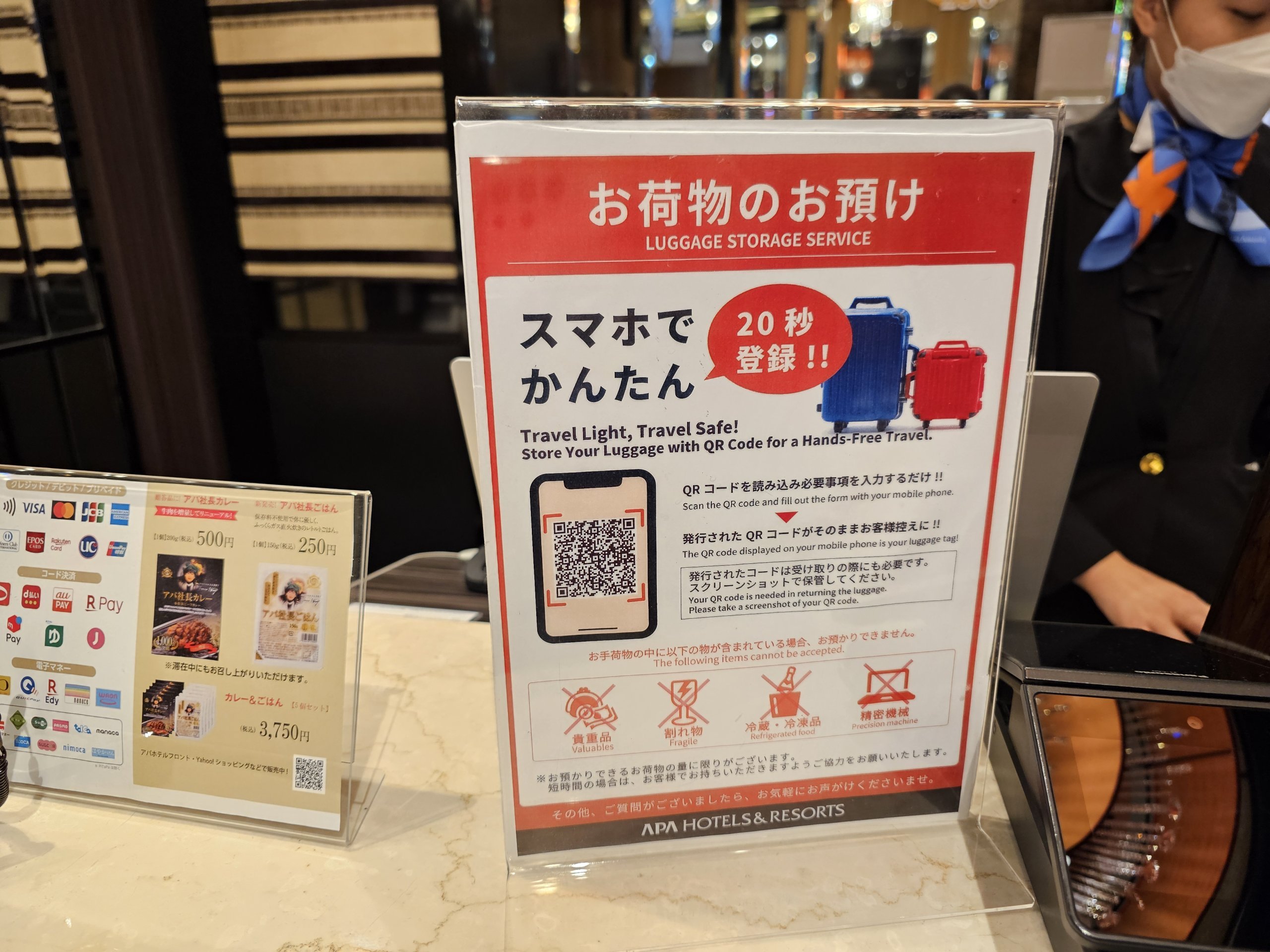 Щоб отримати доступ до камери схову, мені потрібно відсканувати QR-код, вписати своє ім'я та прізвище і знову показати QR-код на стійці реєстрації, коли я його забиратиму.