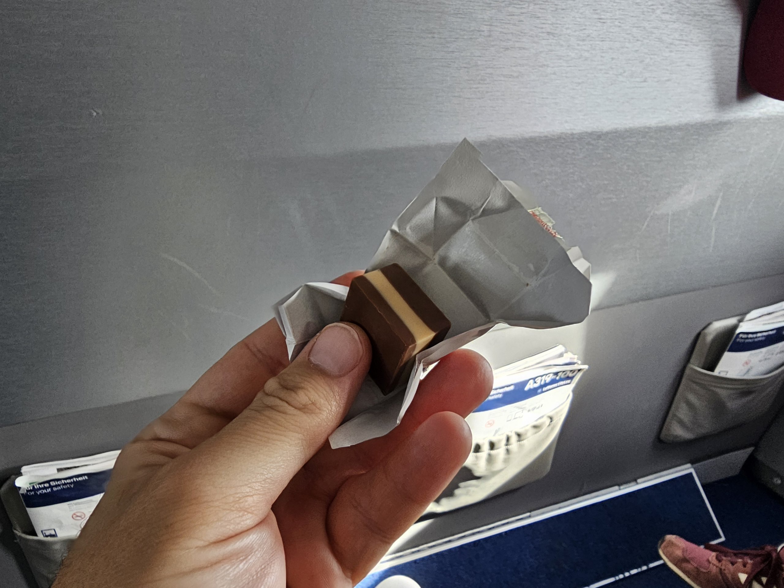 Перед самою посадкою нам ще дають по маленькій стильній шоколадці.