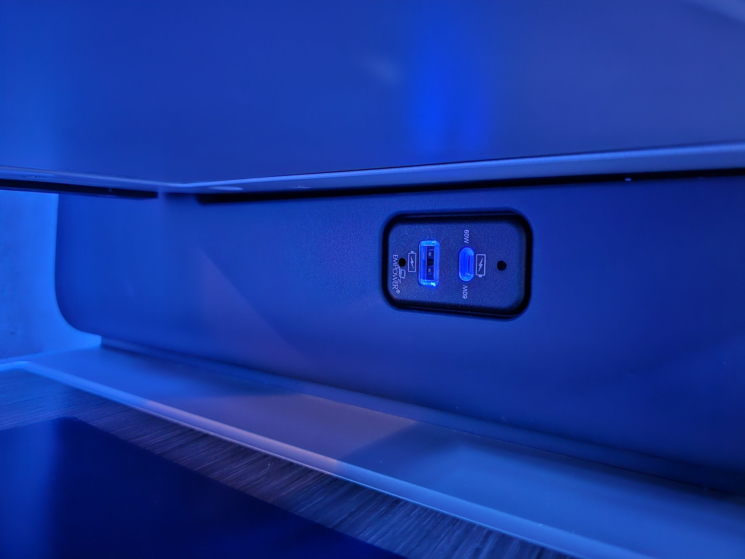 Сидіння має порти USB-A та USB-C, а також універсальну розетку для зарядки електроніки.
