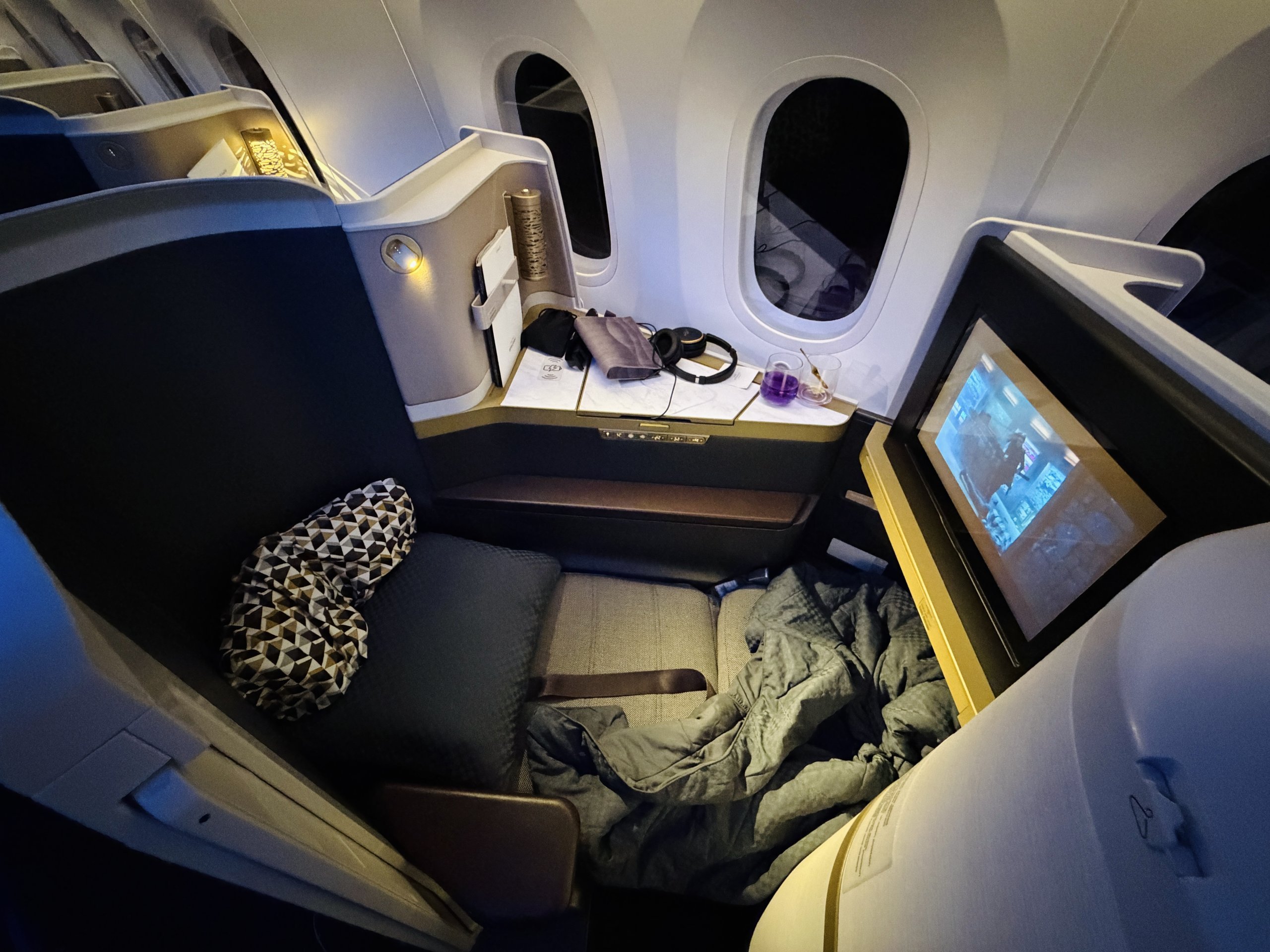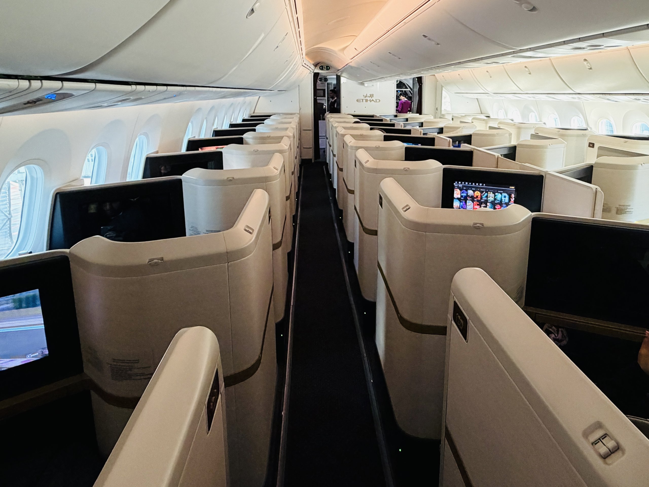 Для мене салон літака має ідеальну схему розташування крісел 1-2-1, з додатковим бонусом, що всі крісла розташовані за напрямком польоту, порівняно з іншими літаками Etihad B789.