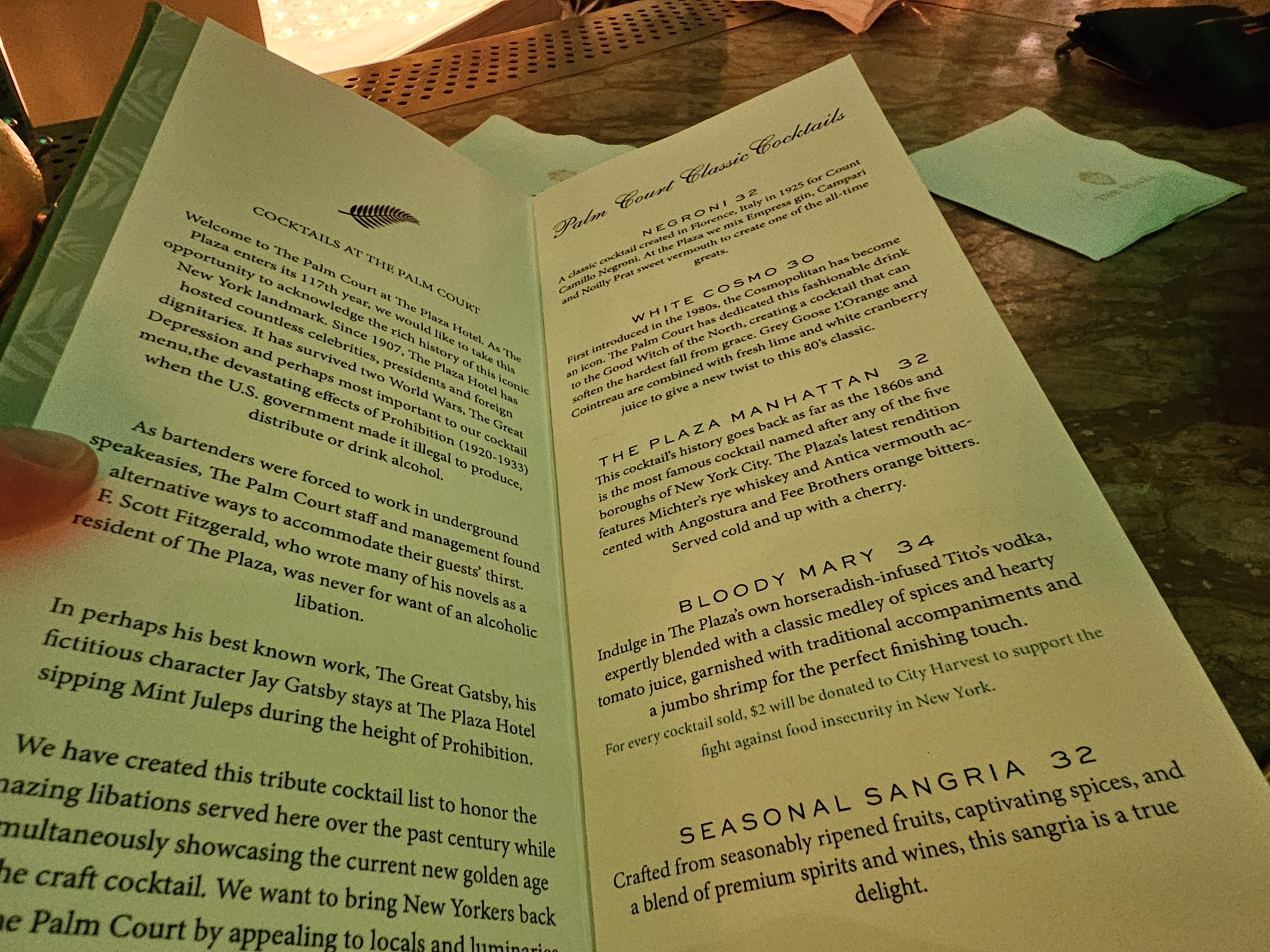 Але хоча обстановка в Palm Court приємніша, ніж в Champagne Bar, простір настільки великий, що здається непривітним.