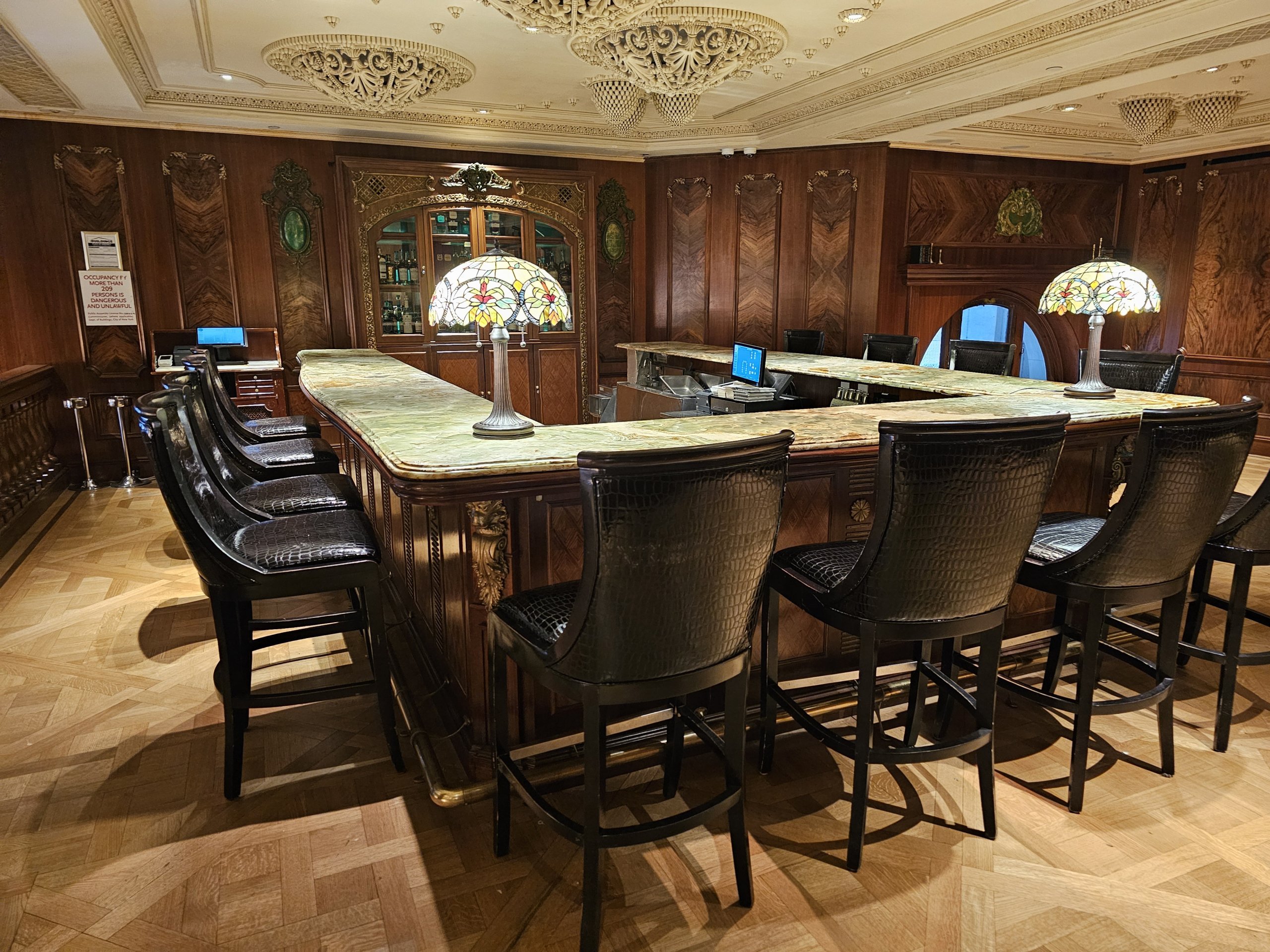 - Palm Court - Ресторан знаходиться в приміщенні з красивою стелею, і атмосфера в ньому трохи комфортніша і затишніша, ніж у барі "Шампанське".