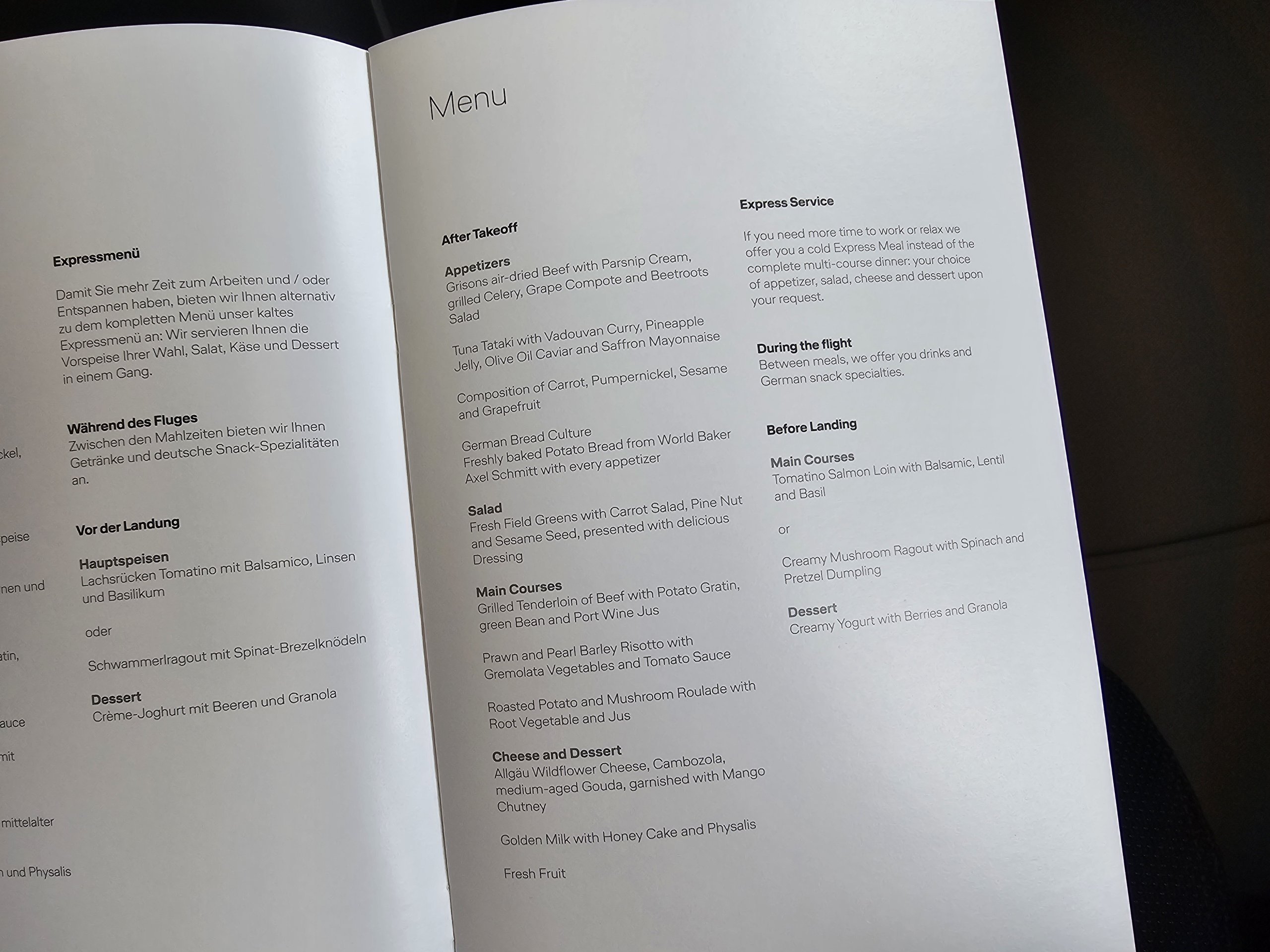 На щастя, ви можете вивчити меню перед польотом на сайті lufthansa.com/menus-in-business-class.