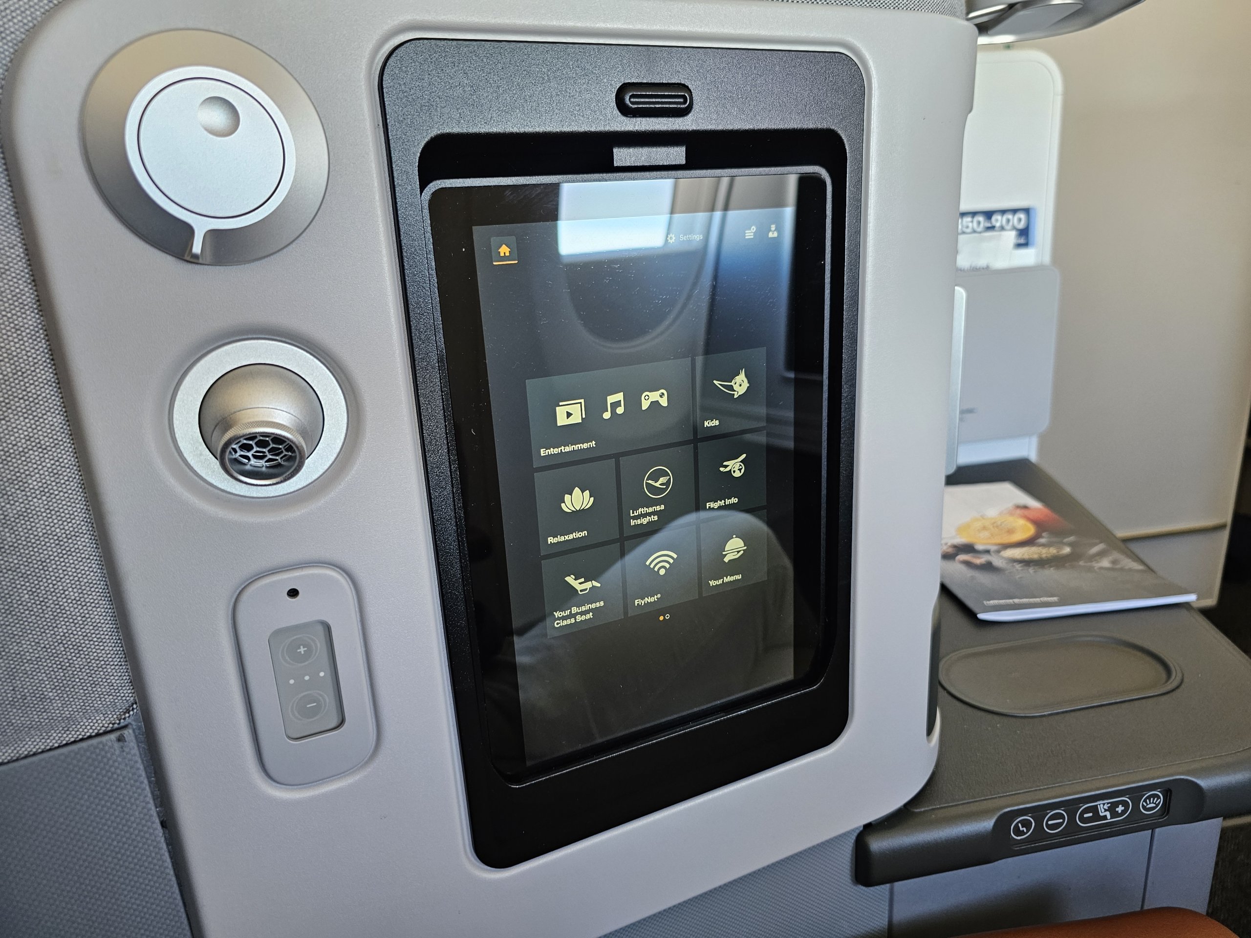 Монітор з роздільною здатністю 4K просто чудовий. Управління здійснюється або через сенсорний екран безпосередньо на моніторі, або через планшет на сидінні, так що ви можете керувати IFE з відкинутим сидінням або з ліжка.