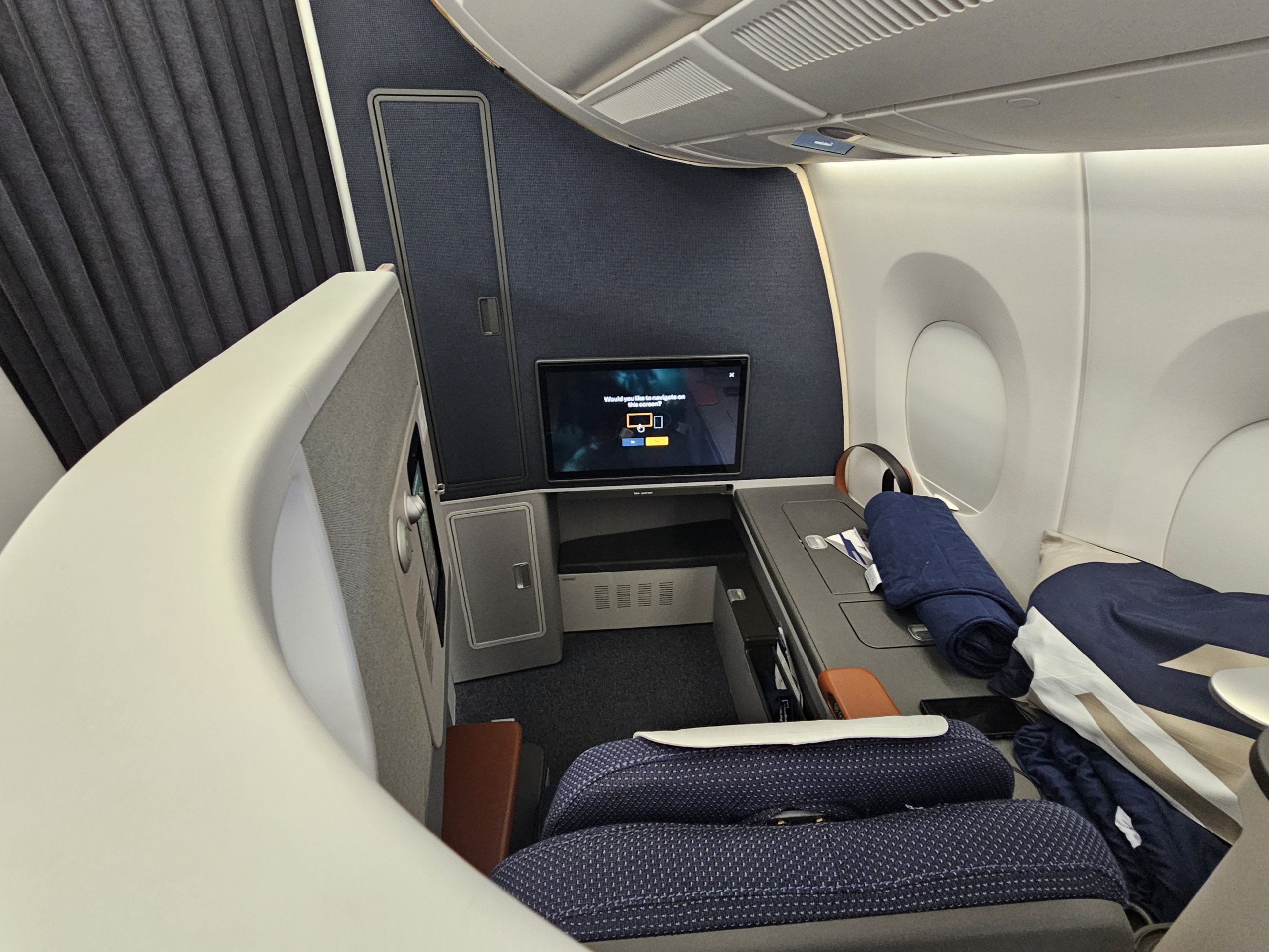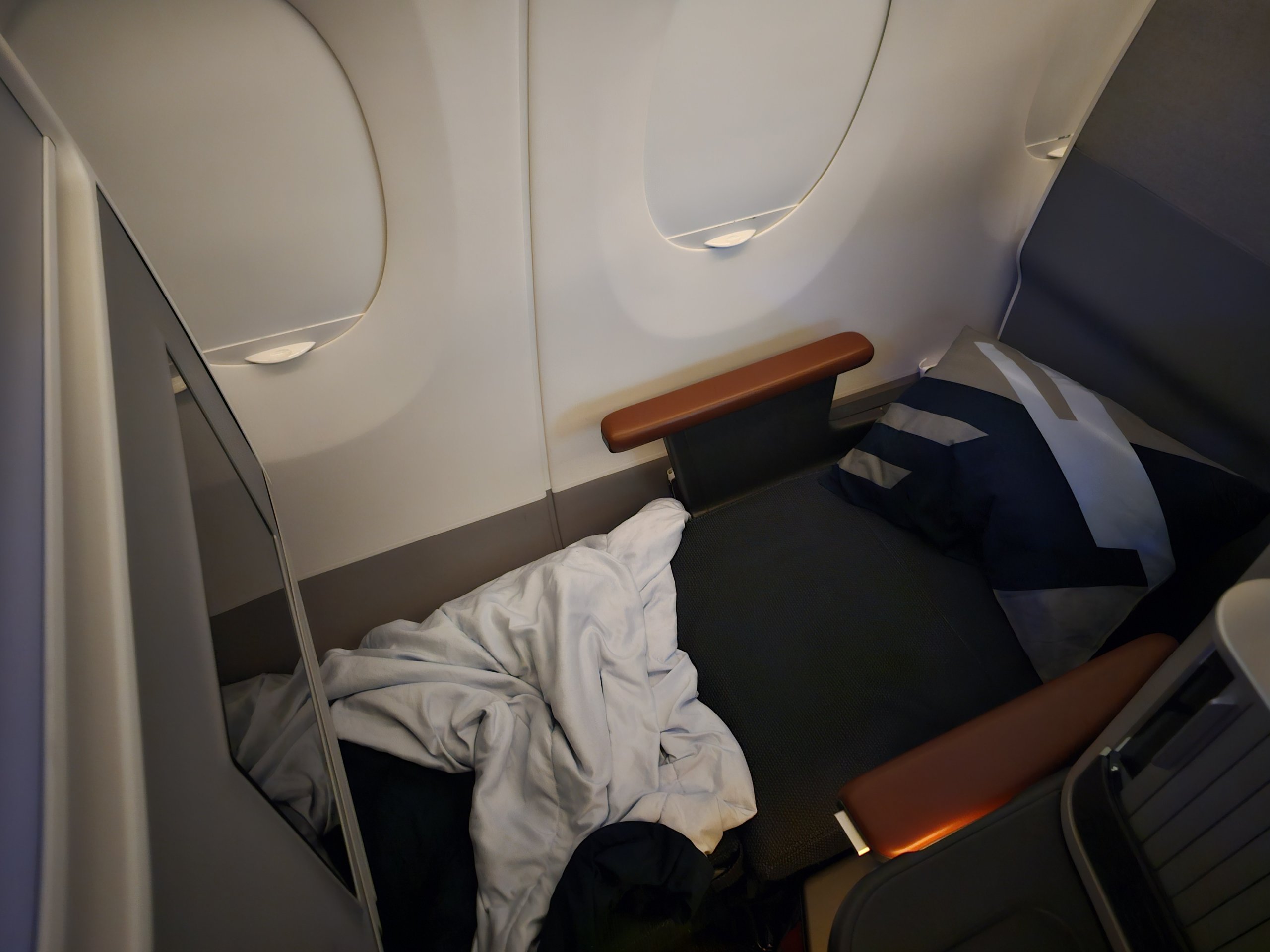 Незважаючи на те, що це був денний рейс, мені довелося випробувати ліжко в бізнес-класі.