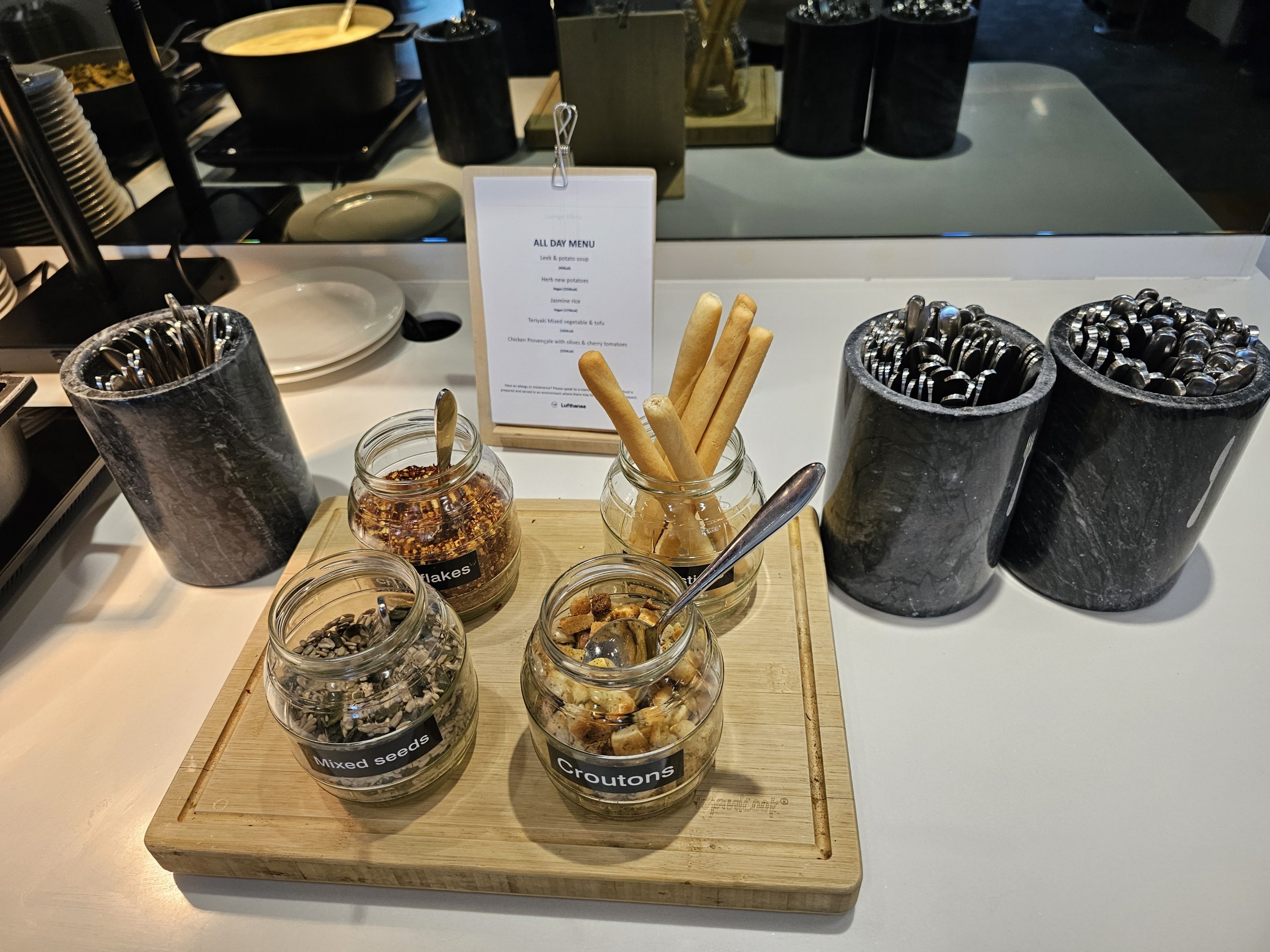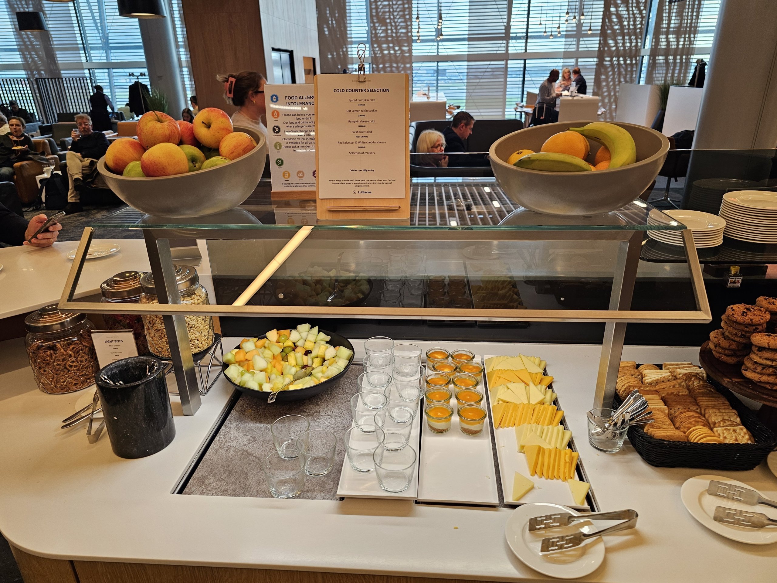 Хоча в багатьох аеропортах є кращі пропозиції їжі та напоїв у сенаторському залі, в лондонському Lufthansa Lounge їжа та напої ідентичні в бізнес-залі та сенаторському залі.