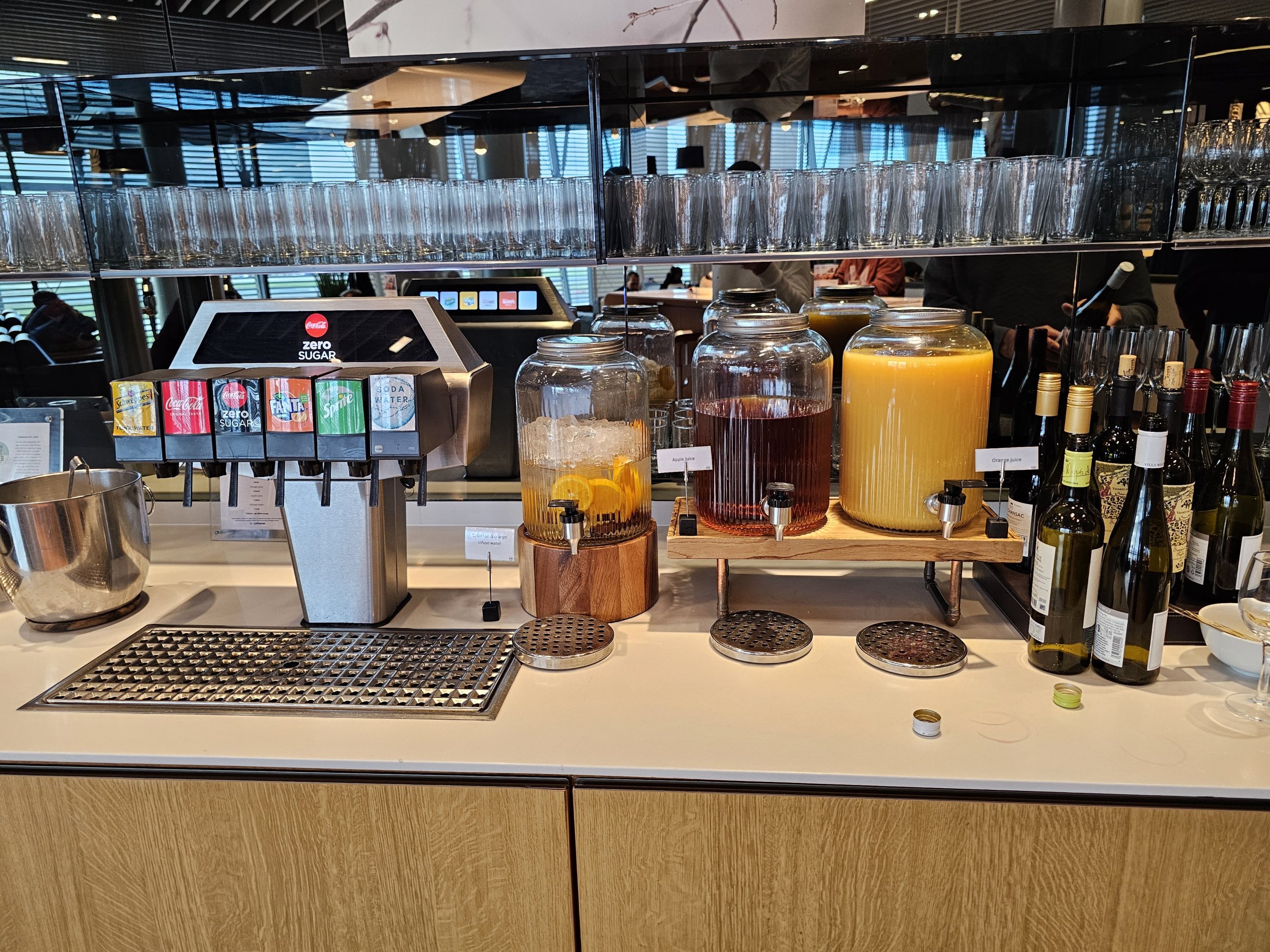 Алкогольні напої, що пропонуються, хороші для європейського лаунжу - особливо, коли мова йде про міцні спиртні напої та лікери.