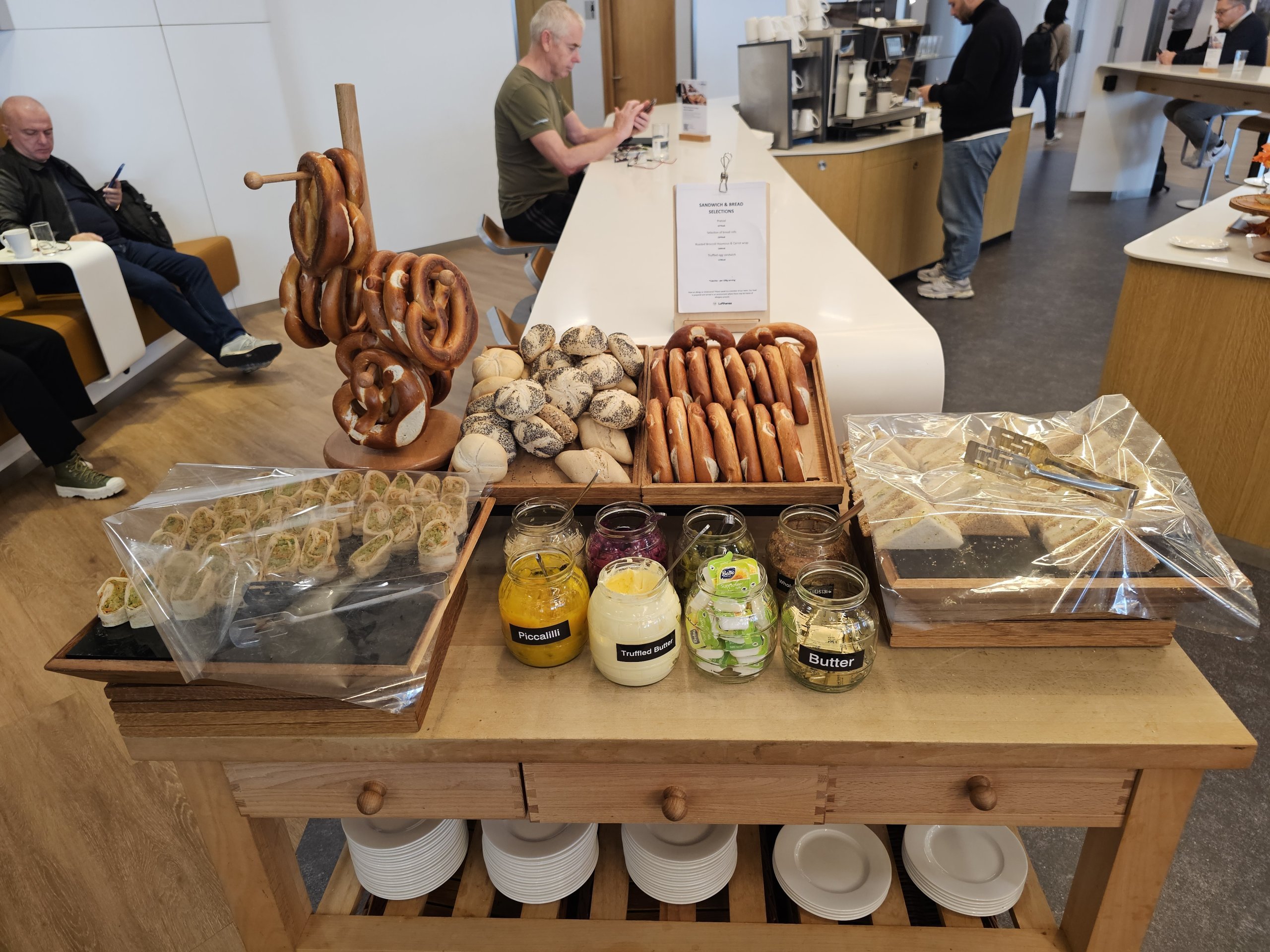 На сусідній стійці ви можете взяти кренделі або бублики з чудовим солоним маслом.