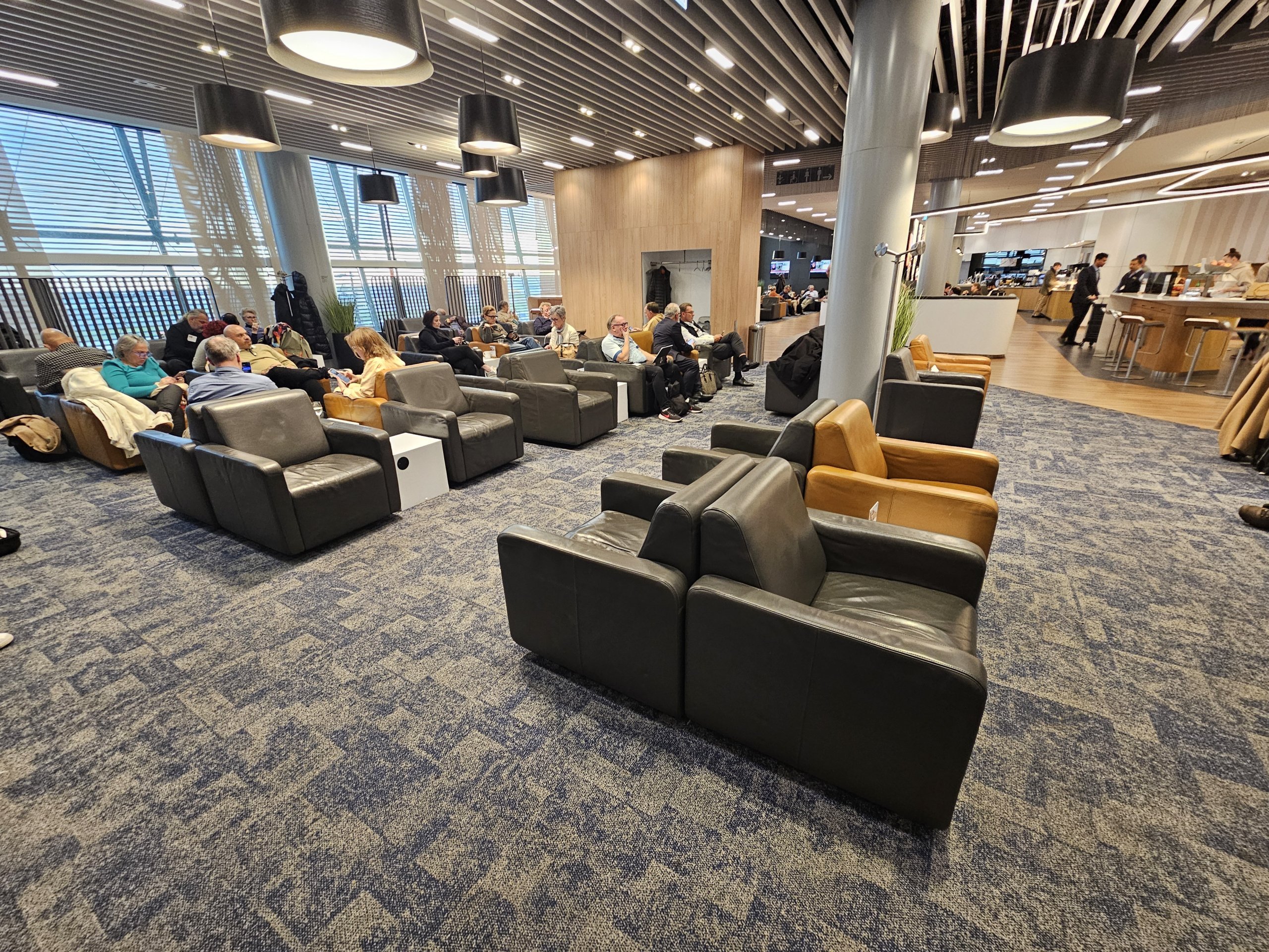 Зал очікування Lufthansa Lounge розділений на дві секції, як і більшість інших залів очікування авіакомпаній Lufthansa Group: