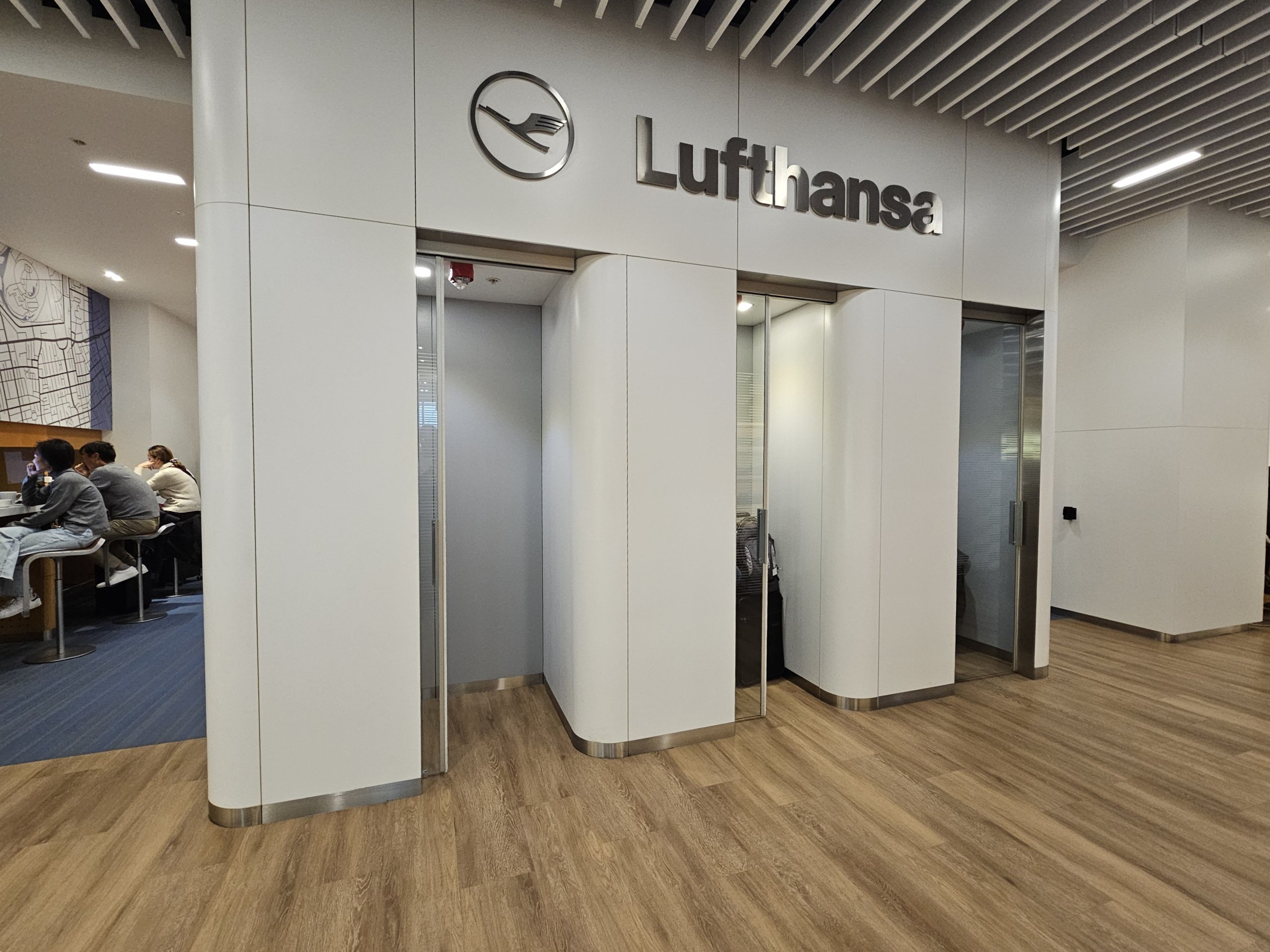 Зал очікування Lufthansa Lounge призначений спеціально для пасажирів бізнес-класу та пасажирів зі статусом Gold або вищим статусом у програмах для часто літаючих пасажирів авіакомпанії.