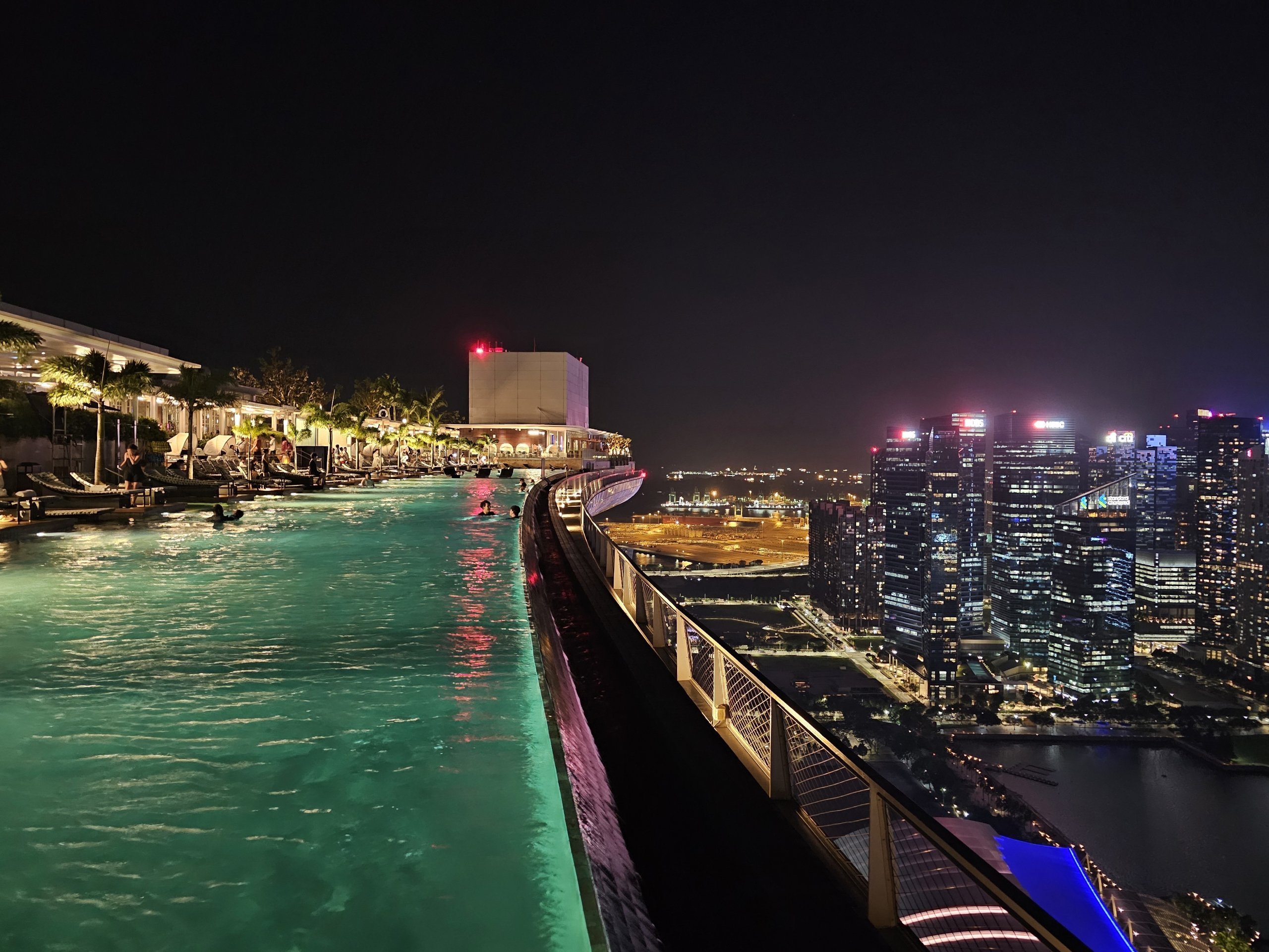 З довжини басейну центр Сінгапуру - як на долоні. А якщо перейти на інший бік даху, то можна побачити Сади біля затоки і сотні вантажних кораблів на задньому плані у відкритому морі.