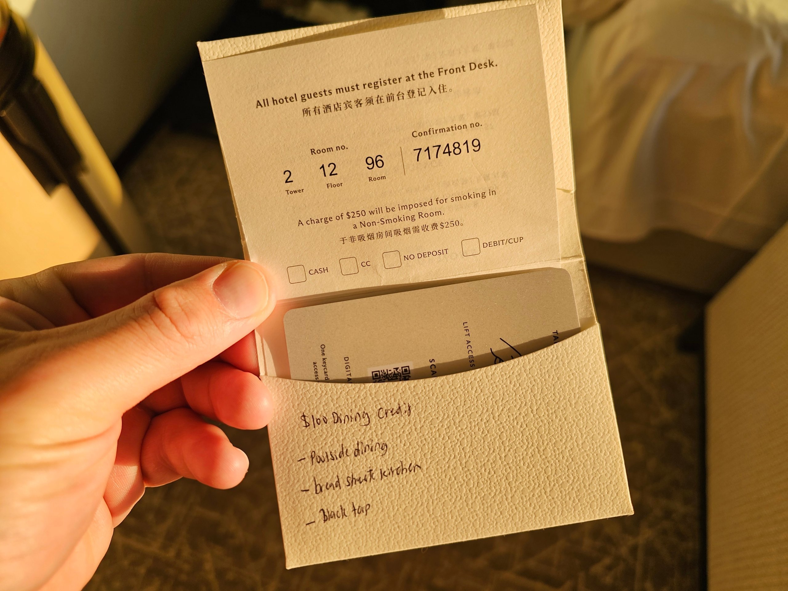 Плюс до цього був кредит на 100 sgd, які можна було витратити у вибраних барах та ресторанах готелю.