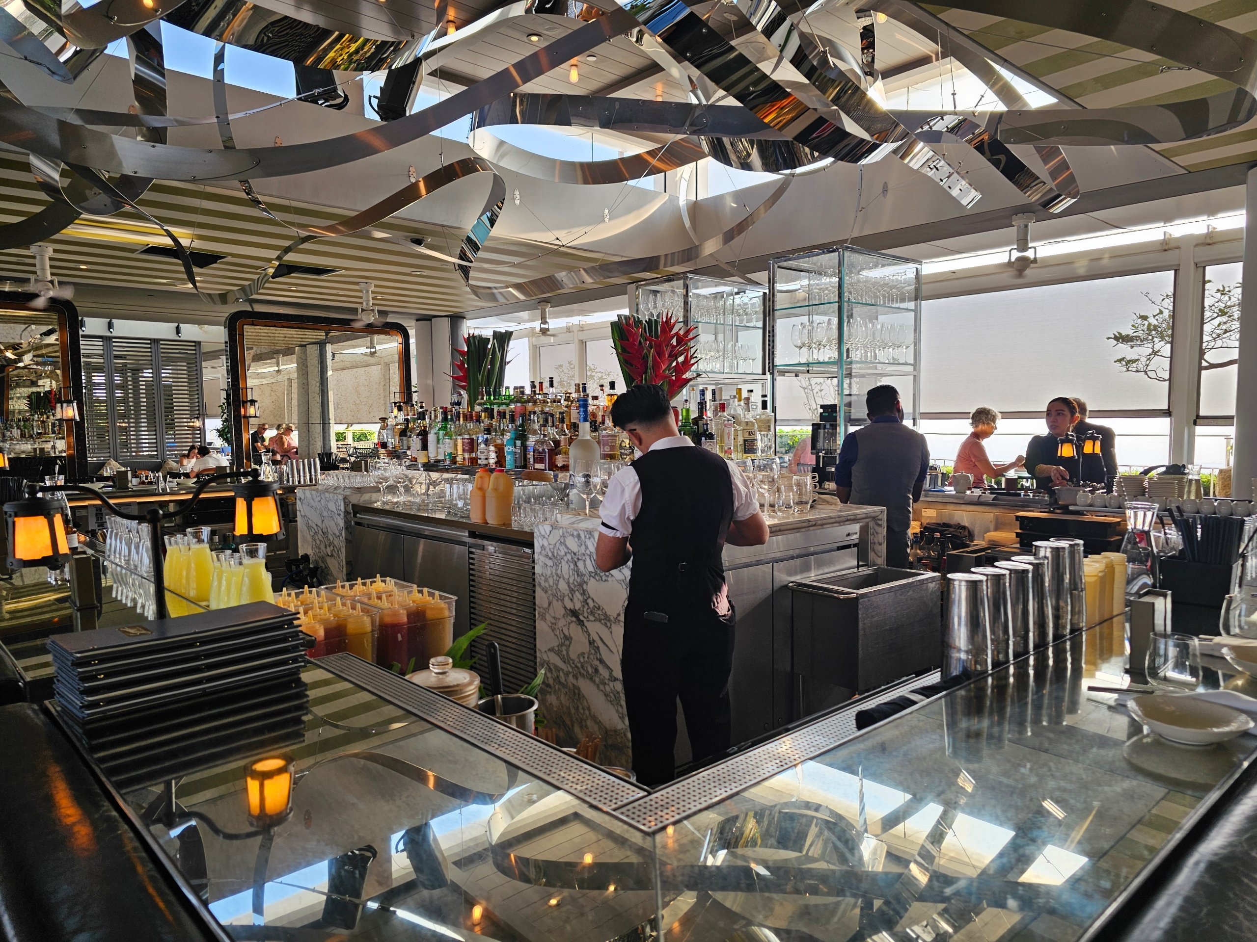 Сніданок подається в барі Spago прямо біля культового басейну на даху.