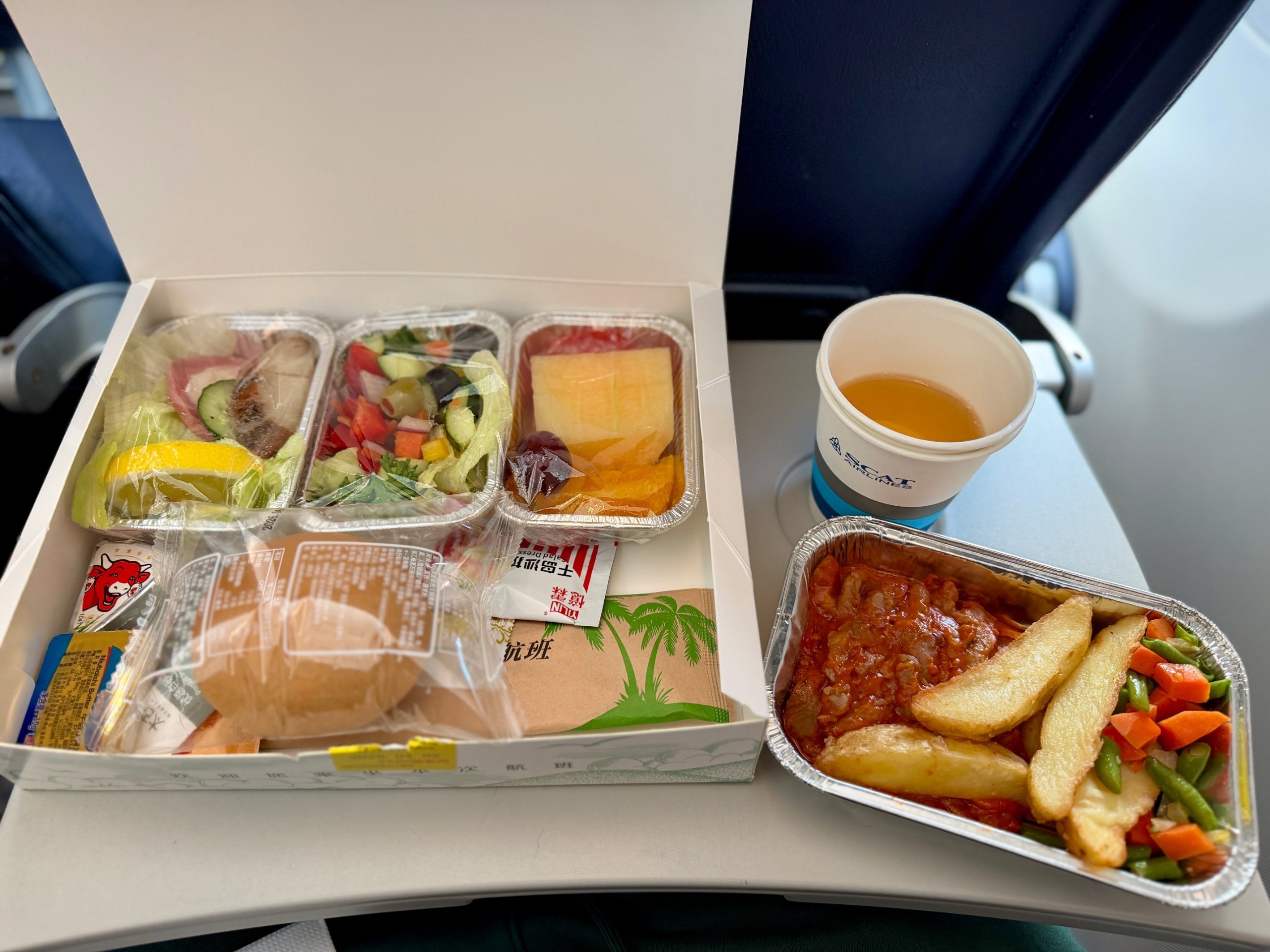 Виліт був пізно ввечері з Праги з приземленням незадовго до полудня в Китаї. Так що меню на вечерю було задовільним, тільки на сніданок я очікував чогось іншого, ніж знову курка або яловичина.