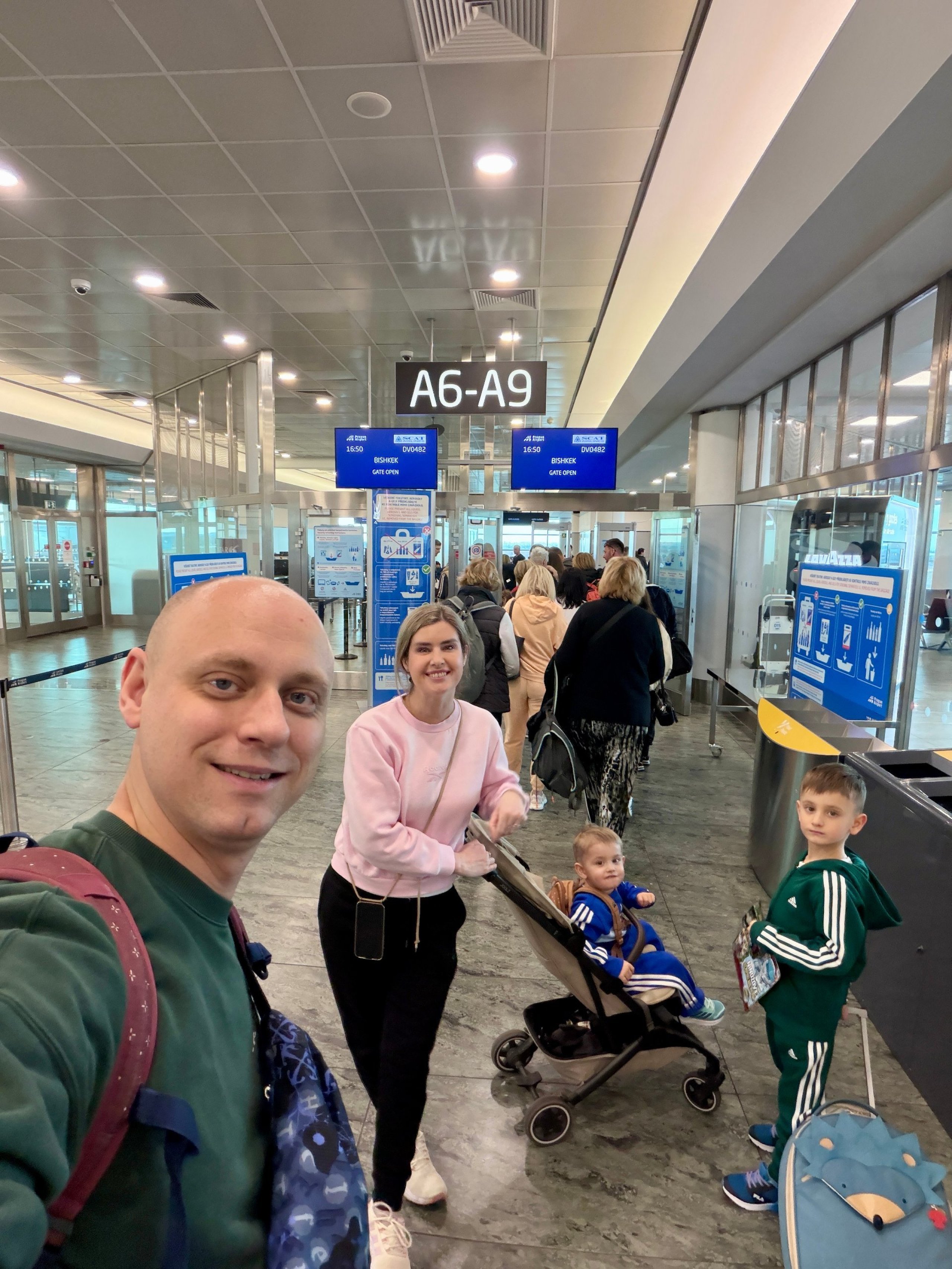 Ми традиційно приїхали в аеропорт з оптимальним завчасним попередженням, приблизно за 1 годину 45 хвилин до вильоту.